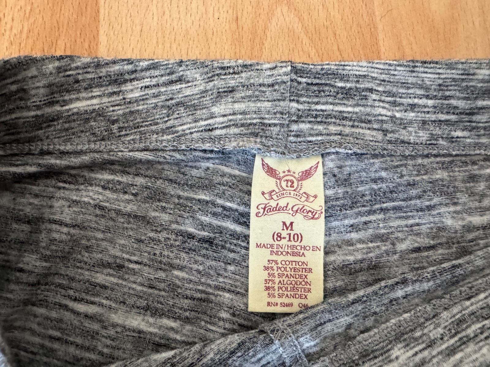 Legíny sivé, zaujímavý vzor. Veľkosť M. Rozmery: pás 35 cm, vonkajšia dĺžka 90 cm, vnútorná dĺžka 67 cm