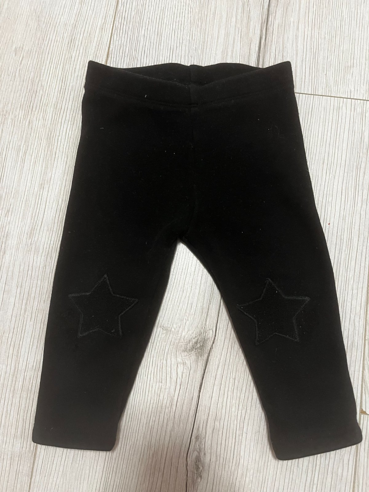 Predám čierne mierne zateplené legíny s hviezdičkami na kolenách značky Next, veľkosť: 80