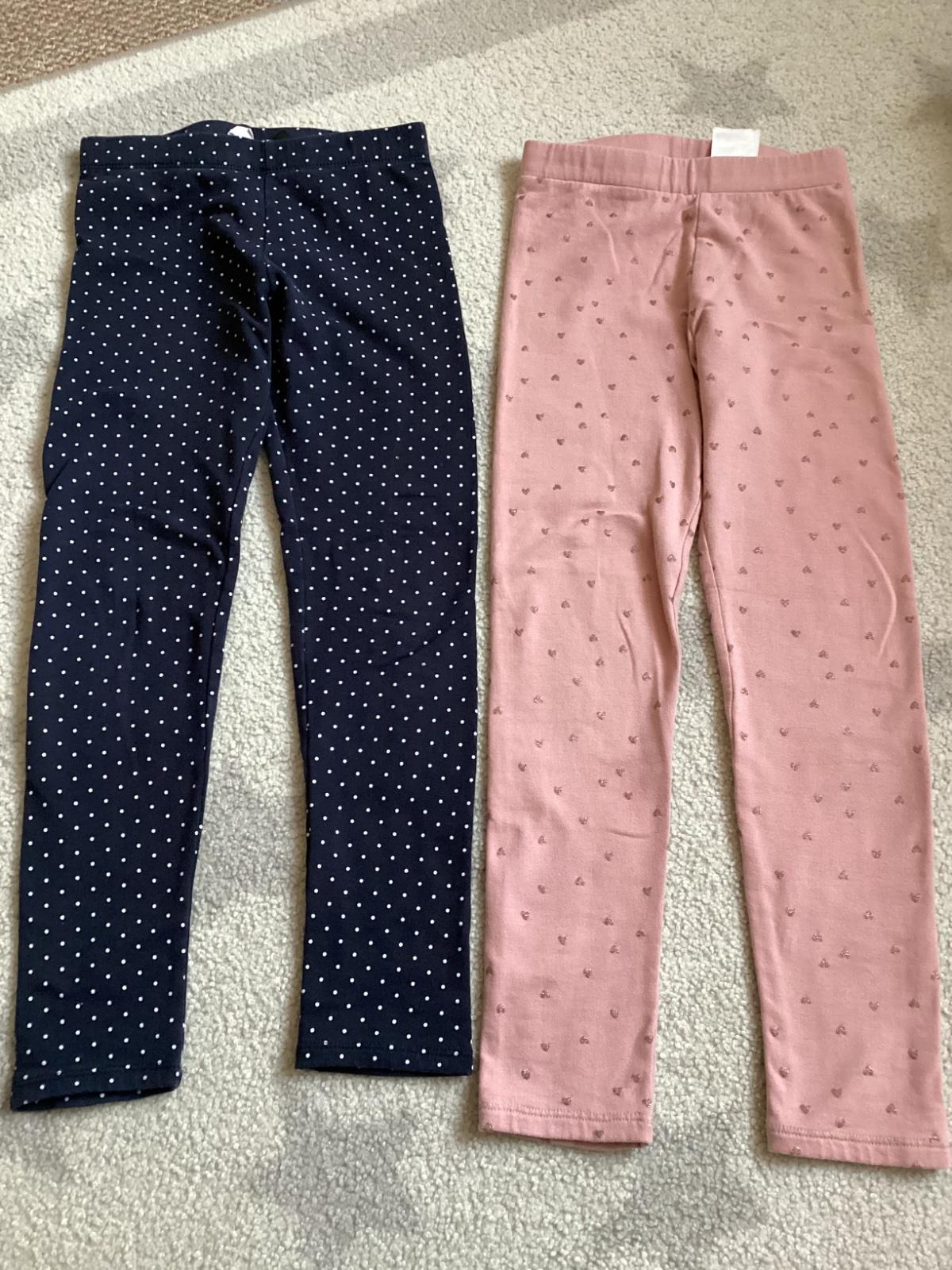 Zateplené legíny v dobrom stave, ružové zašívané ale nie je to moc vidno. Modré bez poškodenia.