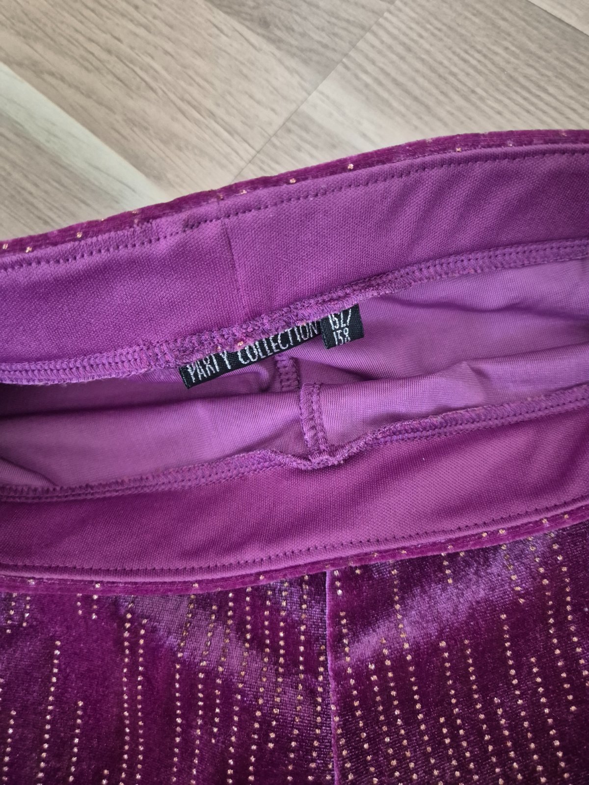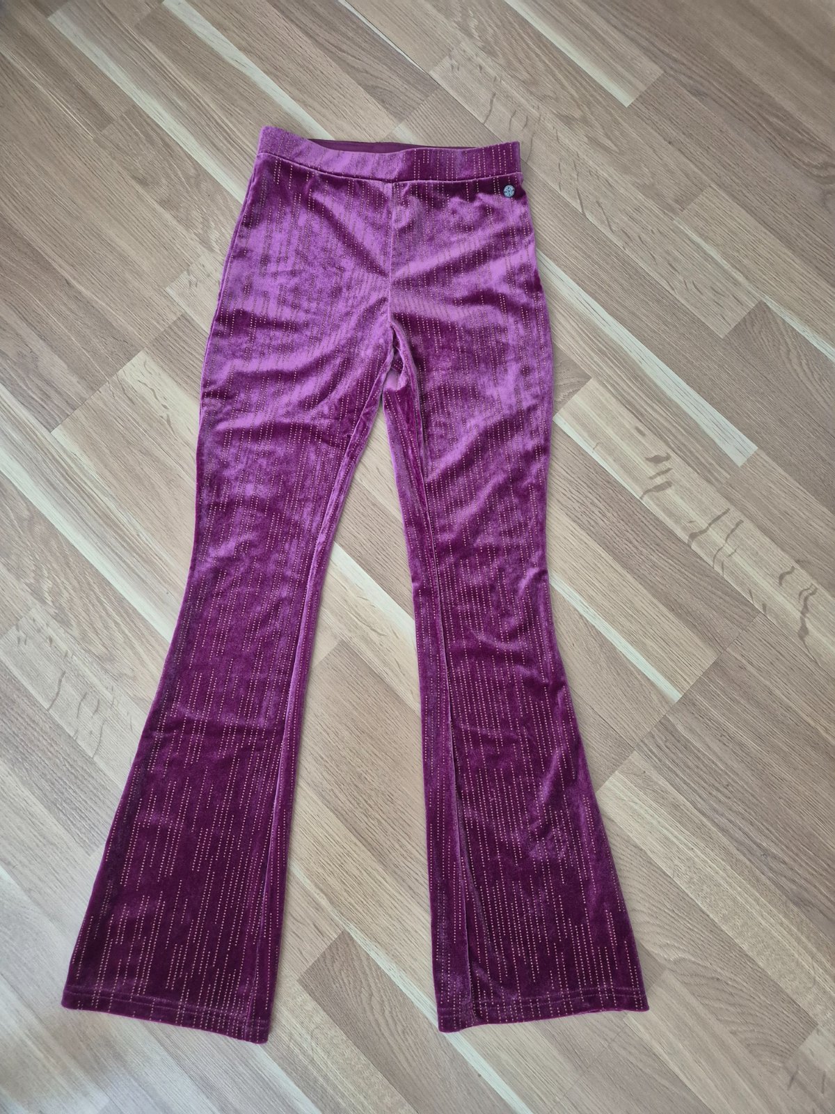 Zvonové legíny, pretkávané zlatou niťou, uvedená veľkosť 152/158. Nenosené. Kupované v NL.