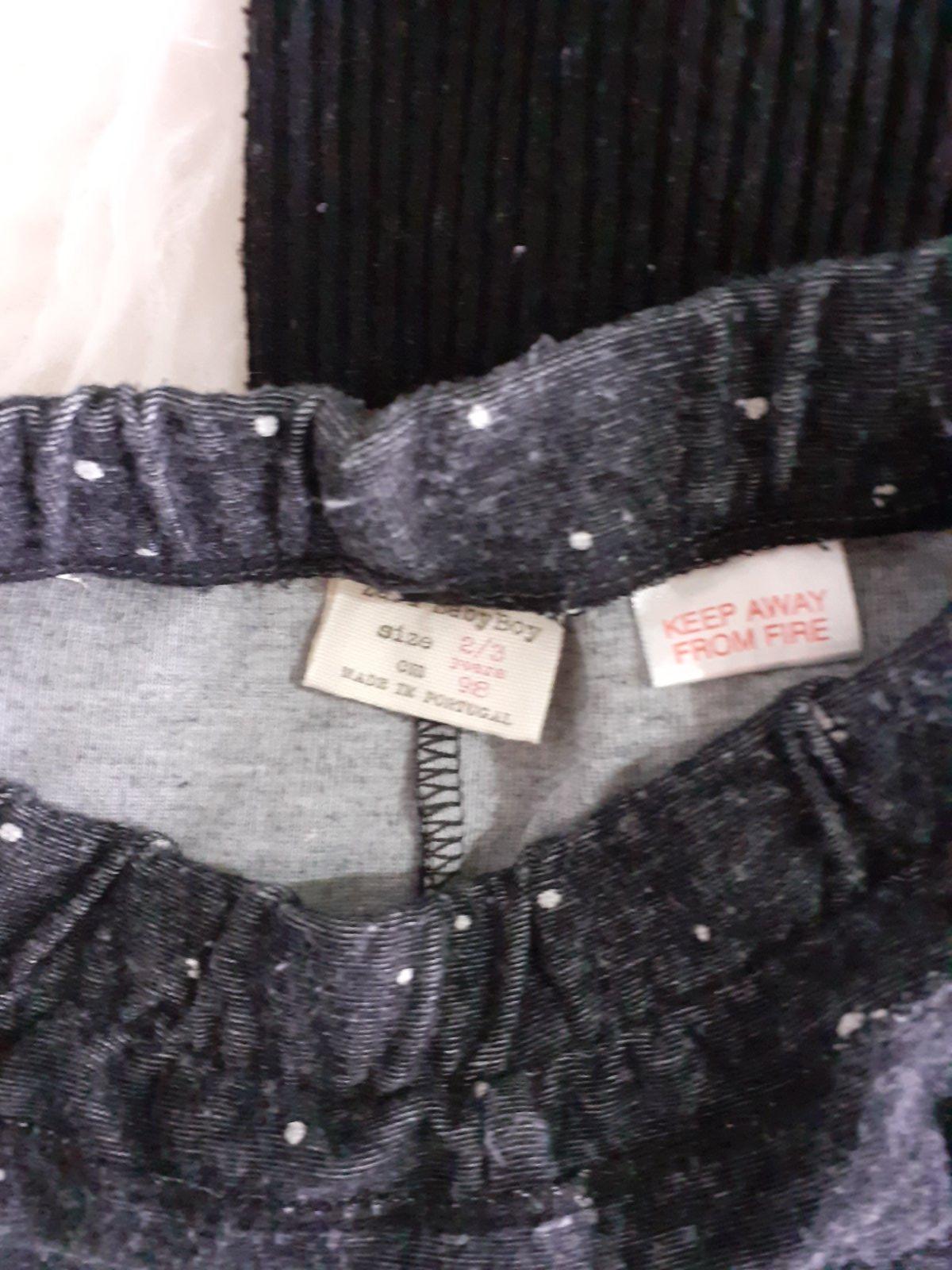 vlavo tmavosede bodkovane teplejsie, maju malu dierku nad kolenom, inac v top stave par krat vzate, velkost 98, dlzka 54 cm, vpravo ciene su take vlnene teplejsie, velkost 104, dlzka 52 cm, tiez maju malu dierku na kolene, nestihla som zasit. Tieto boli nosene viacej, maju zmolky, inac OK. cena za obe