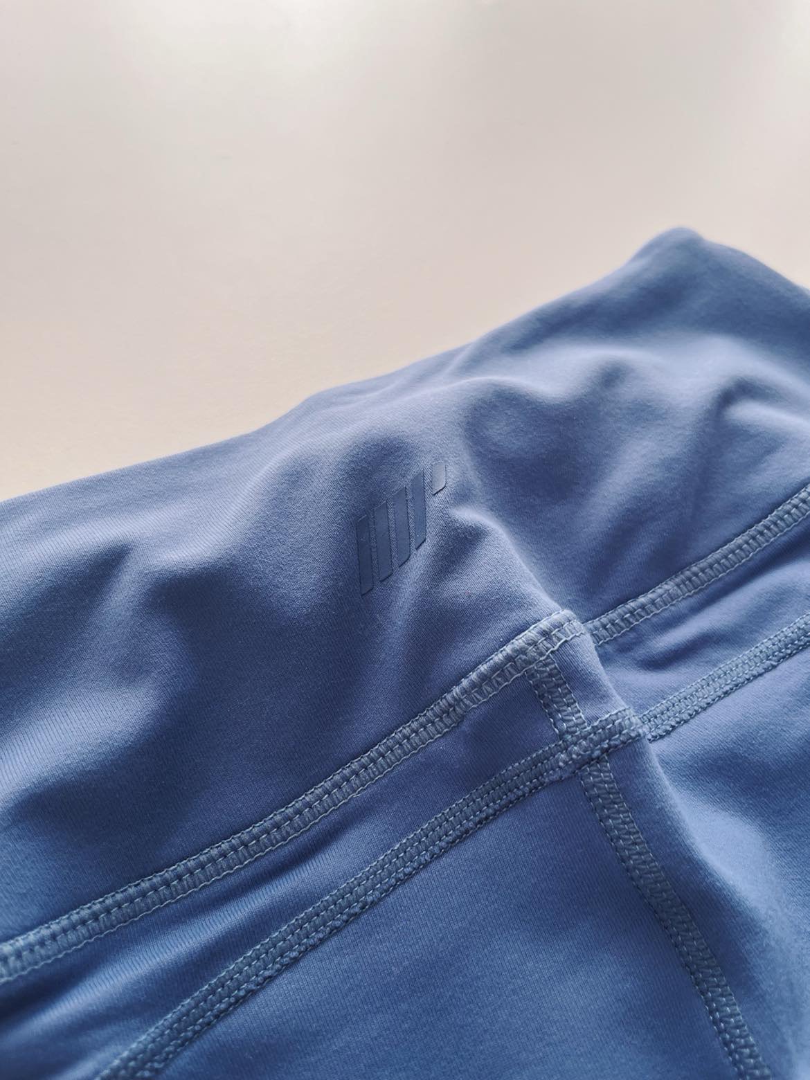 Asi trikrát oblečené legíny značky Myprotein. Veľmi pekná modrá farba. Veľkosť XS. Skryté vrecko na páse a tiež na bokoch možné využíť "sieťku" ako vrecká.