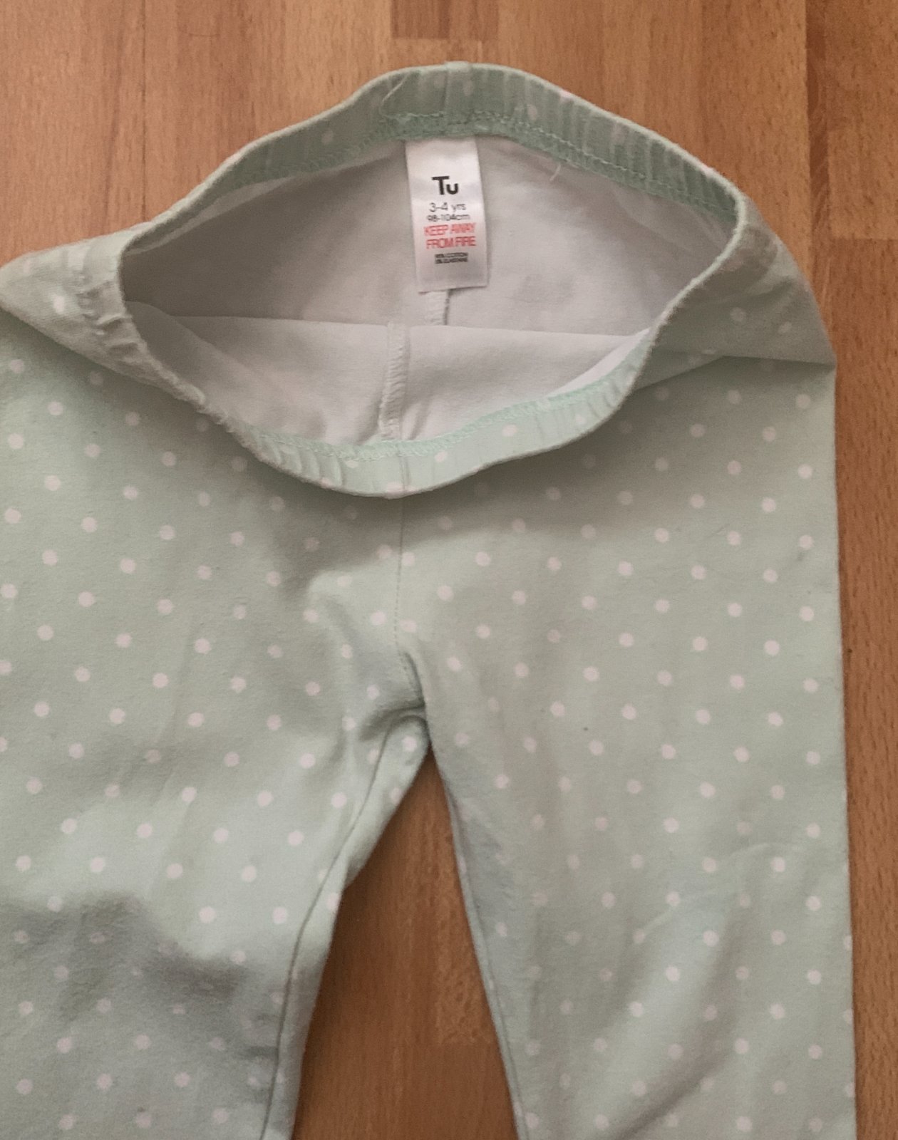 TU Svetlozelené legíny s bielymi bodkami