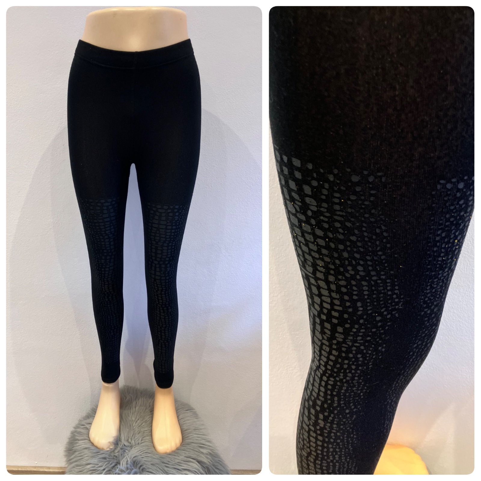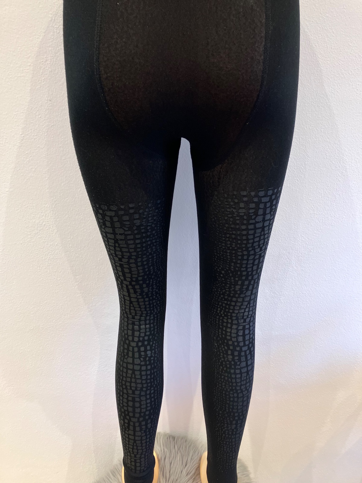 Dámske čierne kamašle so vzormi, elastické, materiál 90%polyester 10%elastan.