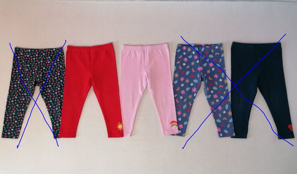 2,30€/ks. Skvele leginky, prijemny material (95% bavlna, 5% elastan) a vyborny strih, bez rusivych bocnych švov, pohodlny a elasticky pás, velmi dobre dietatku sedeli. Dvojcislo 86/92, a aj tak sedi. Vyborny stav.