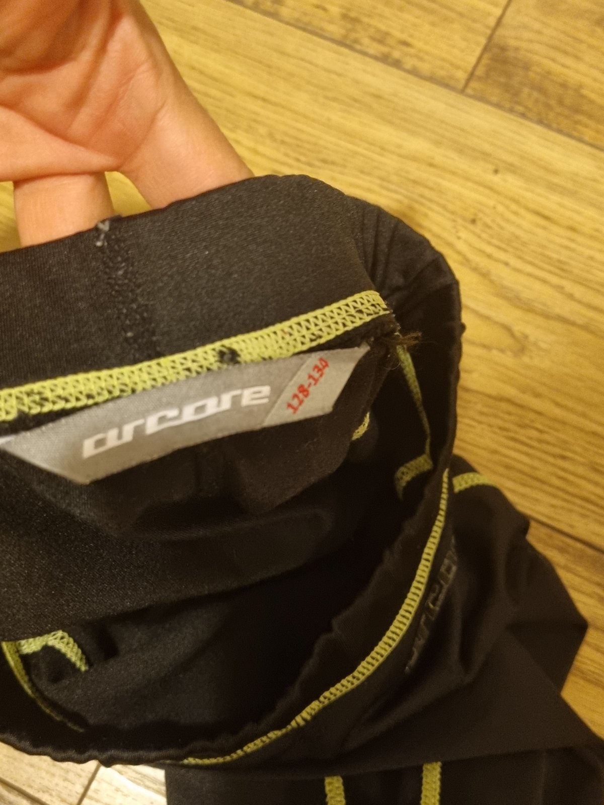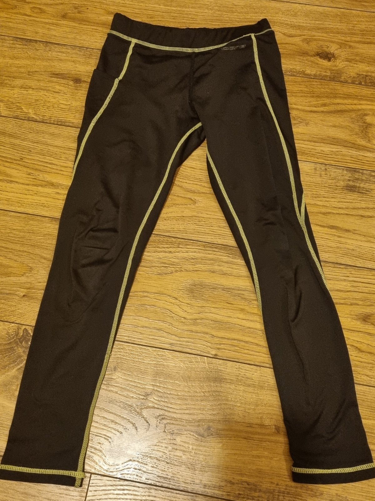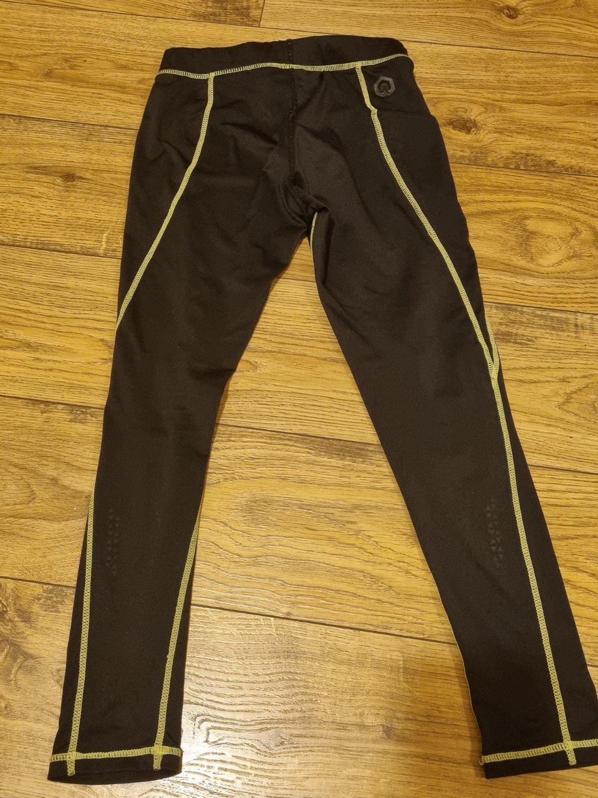 Legíny s vreckom na boku. Nie sú veľmi obtiahnuté na nohách. Nosené boli pod futb.dres v chladnejšom počasí. Dvojčíslo 128-134, ale skôr 128. Určite ešte poslúžia.