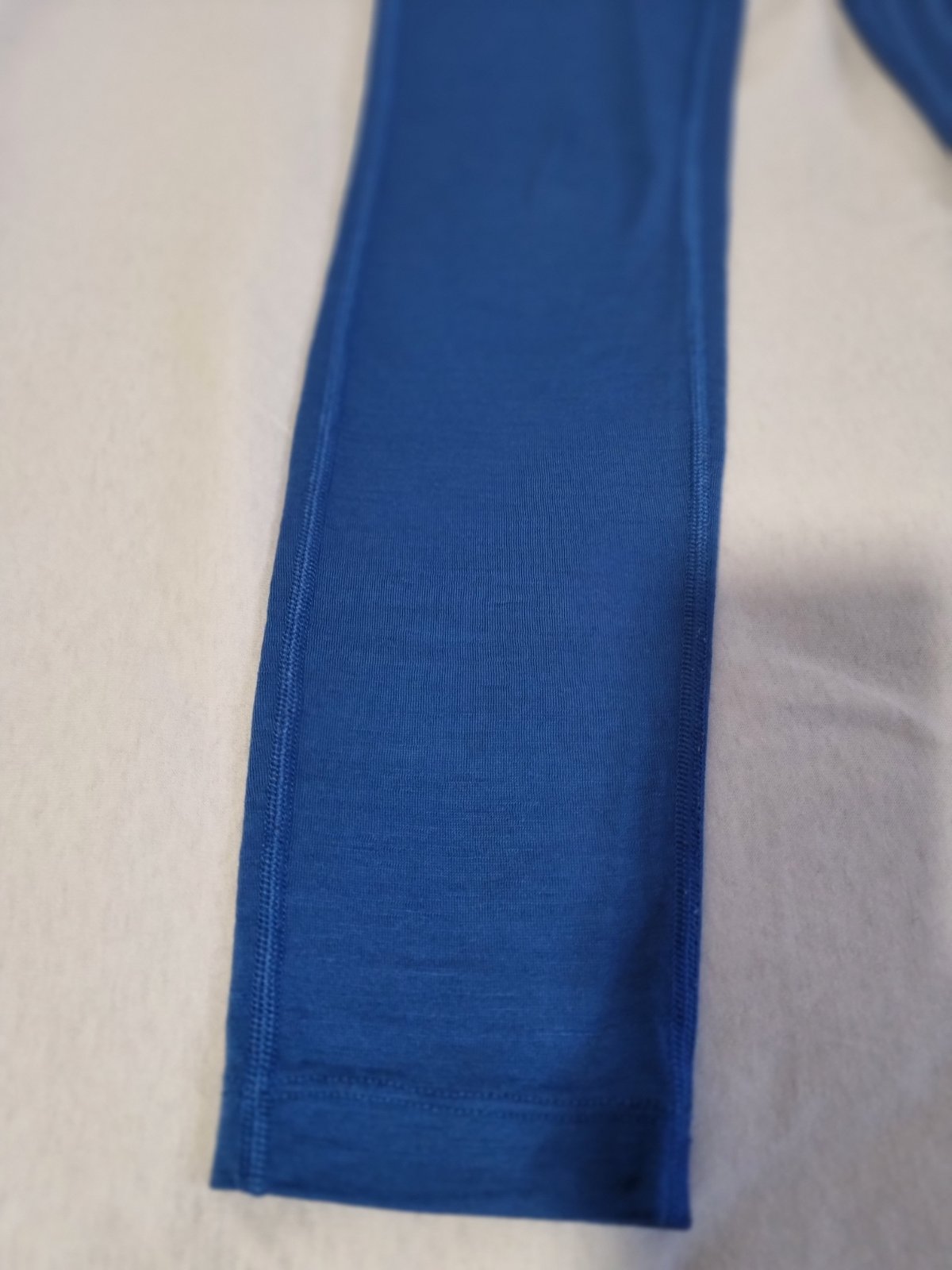 100% merino, nepichá, príjemné na telo. Našla som 1 dierku na pravom kolene, nezašívam, nech ešte viac nepokazím. Dierka na kolene zohľadnená v cene.