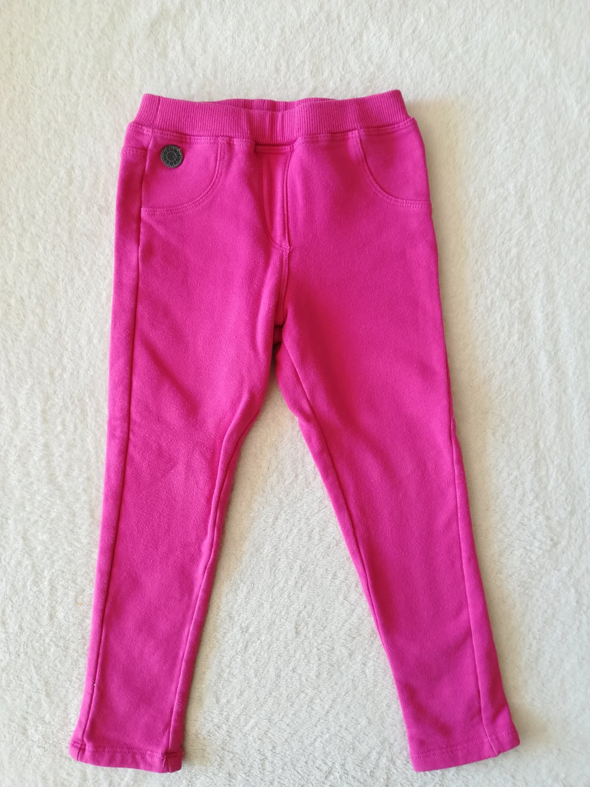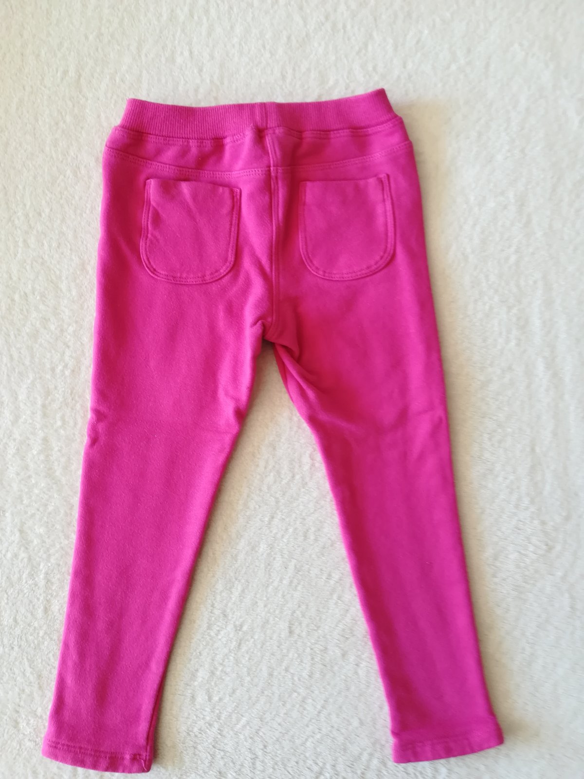 Dievčenské hrubšie legíny veľ. 98, dĺžka od pása dole 51,50 cm, dĺžka od rozkroku po spodok 35 cm, dĺžka pása 23 cm. Pás gumička.