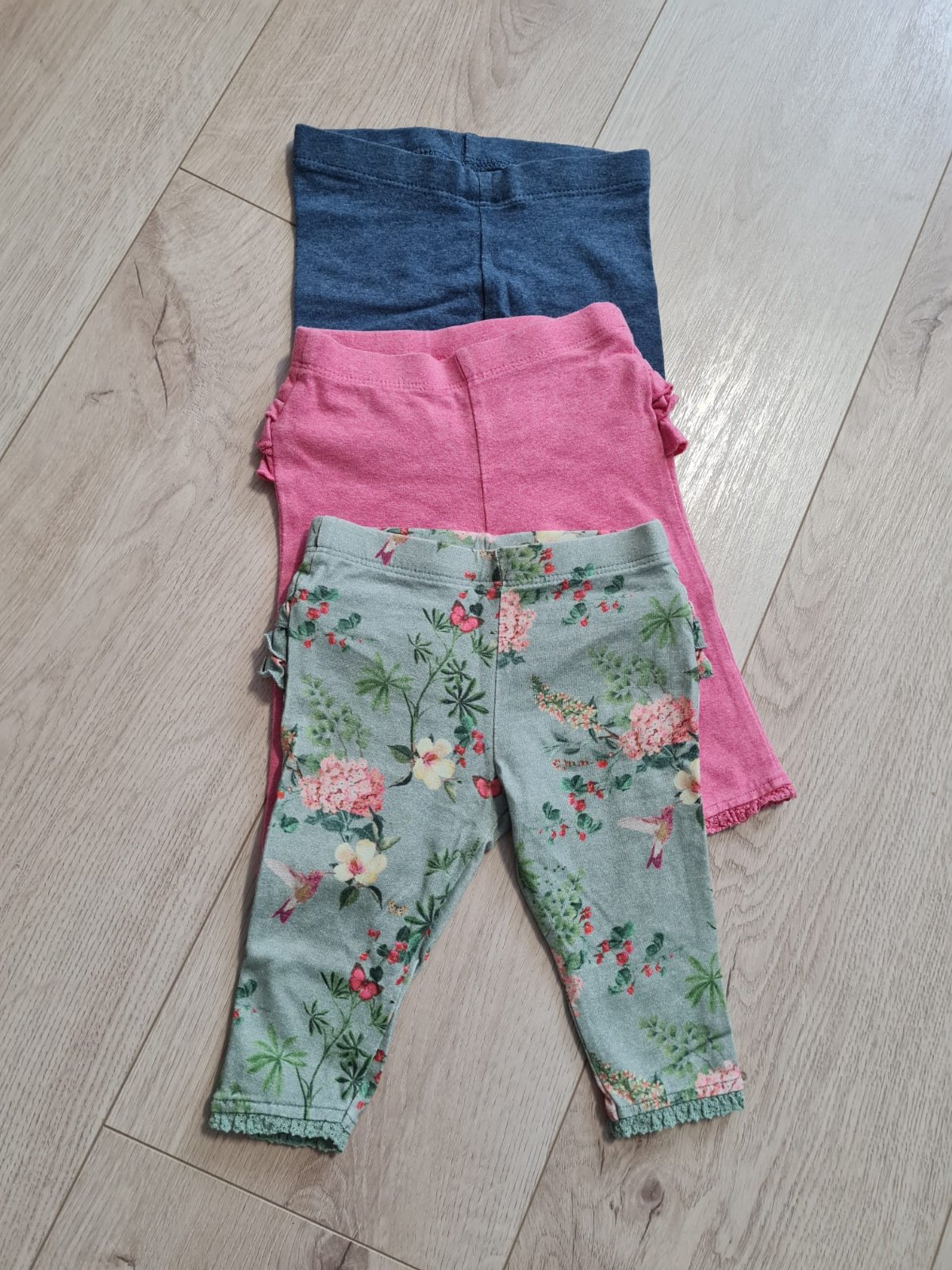 Krasne leginky, v top stave. Velmi prijemny material. Par krat vzate. Velkost odhadom 62 (visacky som odstrihla, mali sme oblecene cca do 3 mesiacov). Cena spolu (+ posta).