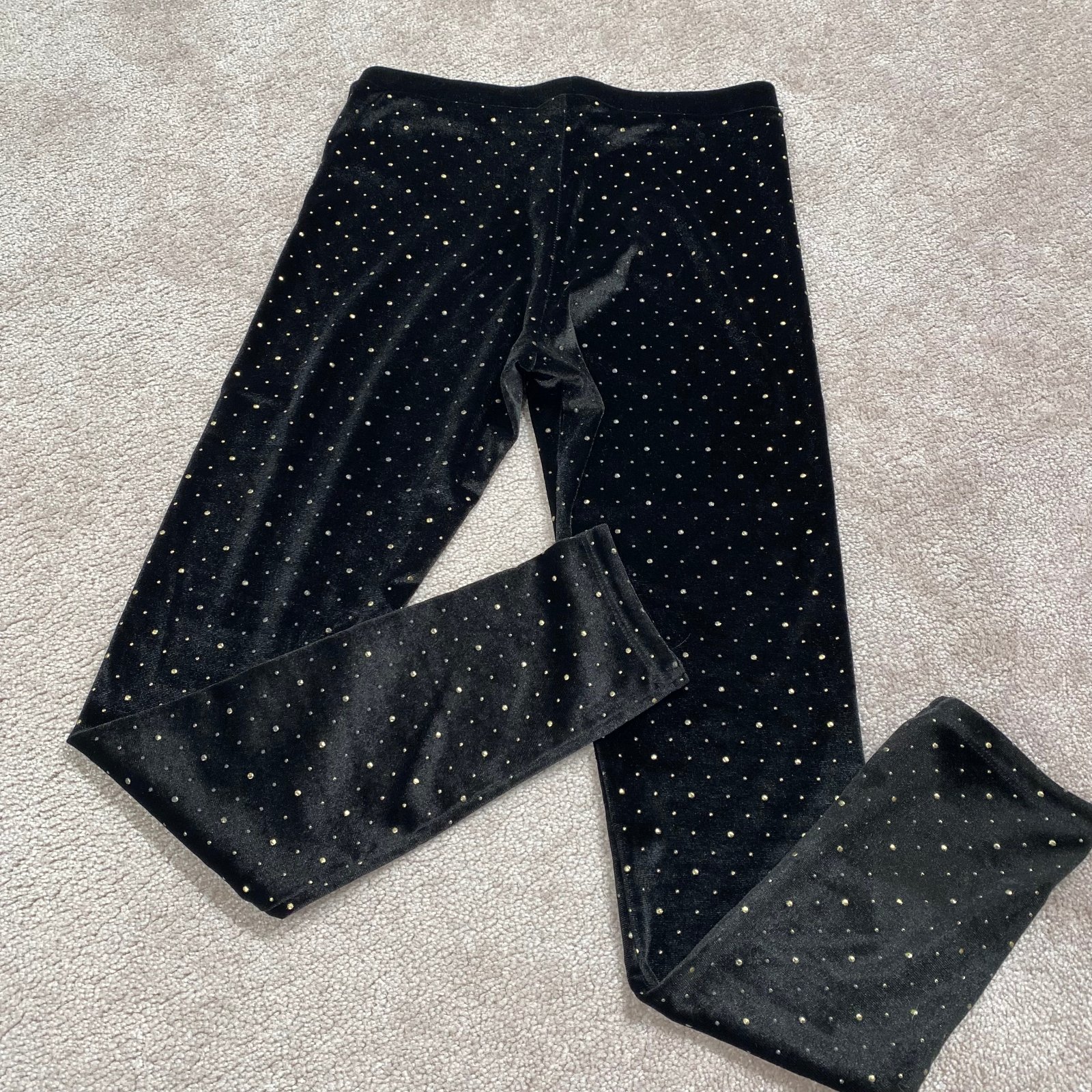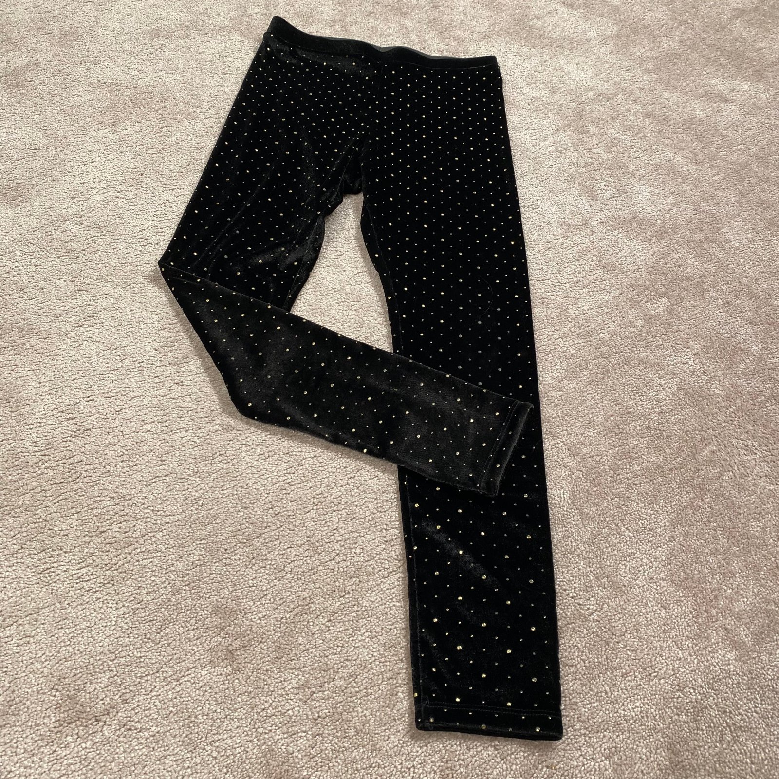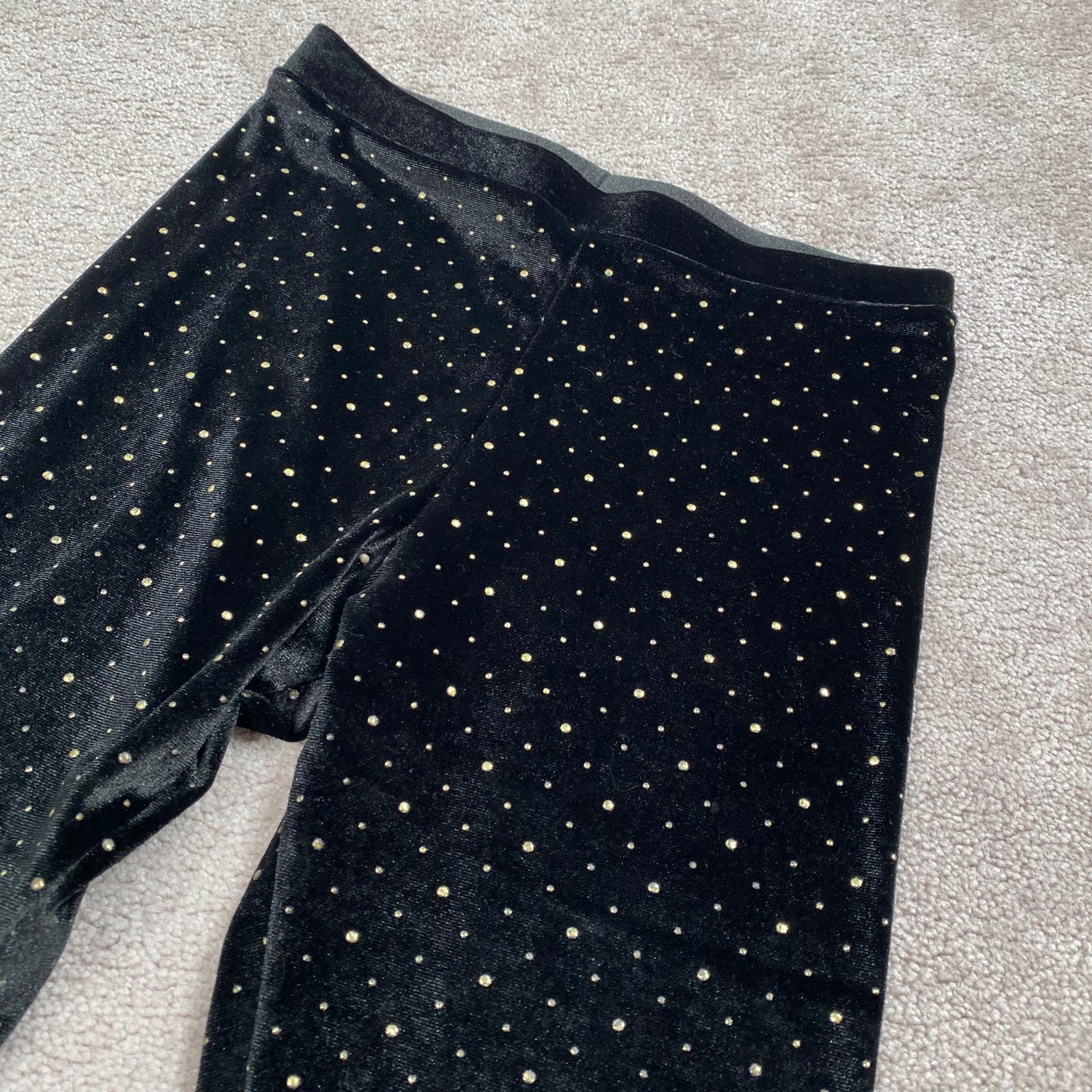 ZDARMA k nákupu. Čierne semišové legíny so zlatými bodkami. Dĺžka je 84 cm, šírka je 30cm.