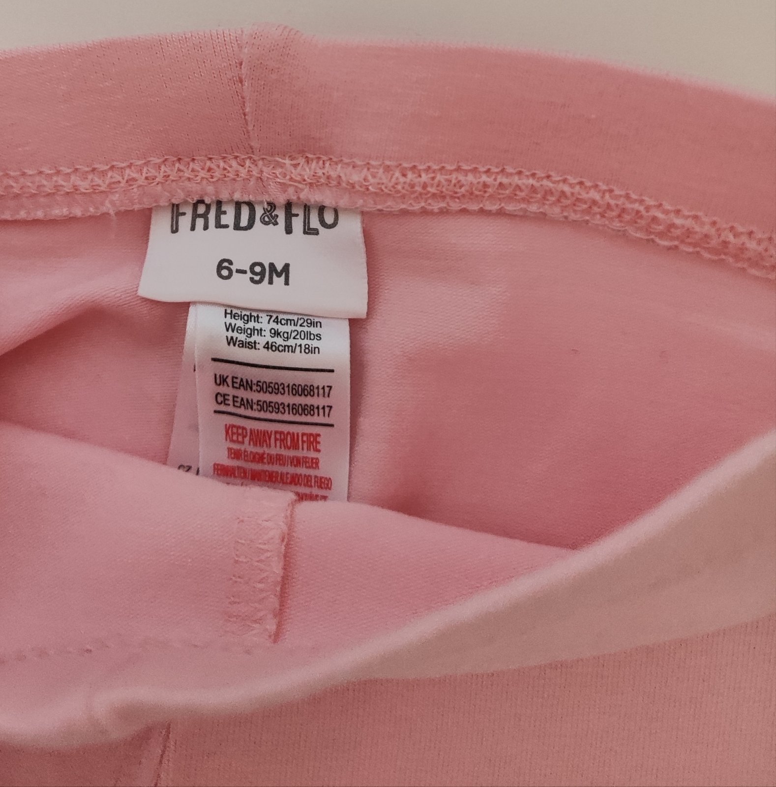 Svetlo.ružové tenké legínky s potlačou červených makov, v páse na gumičku. Top stav. Veľkosť uvedená na štítku 6-9mes. Celková dĺžka: 35cm, od rozkroku: 21cm. Šírka v páse v kľude: 2x21cm, natiahn...