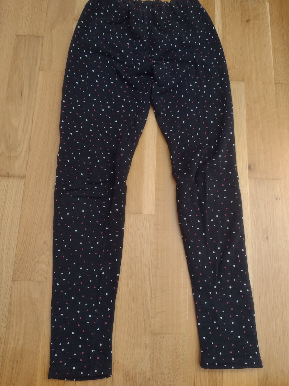 Mierne zateplené. Veľkosť uvedená 140, ale sú menšie. Dĺžka 75 cm. Pás v kľude 23 cm.