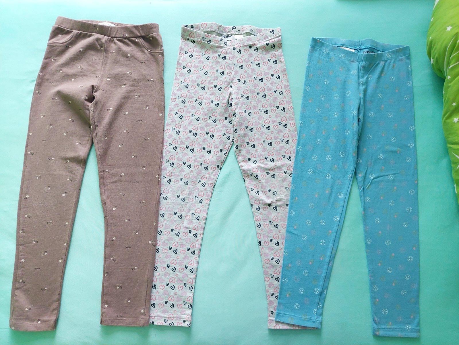 Predám dvoje zateplene legíny veľkosť 122/128 na sivých zašita dierka a na hnedých treba zašiť vrecko a modre sú tenke cena 3€