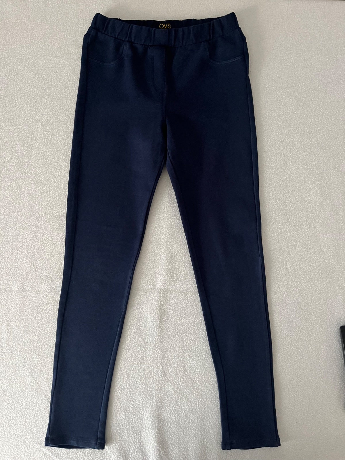 Dievčenské jednofarebné legíny značky OVS, tenké, jemne elastické, pás na gumu. Farba:tmavosivá. Materiál: 95% bavlna,5% elastan. Nový tovar s visačkou. ROZMERY: dĺžka (meraná vzadu):73cm,od rozkr...