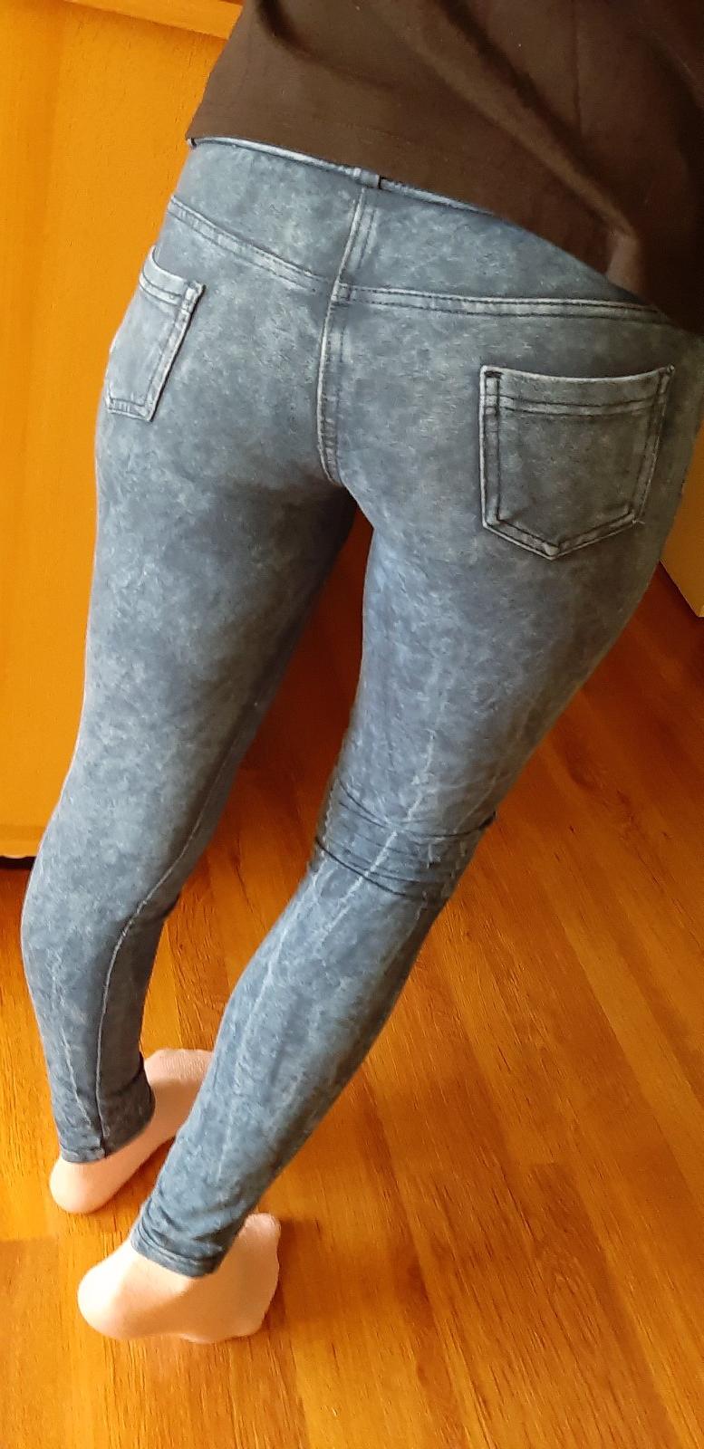 Legíny vzor riflí, majú známky nosenia.