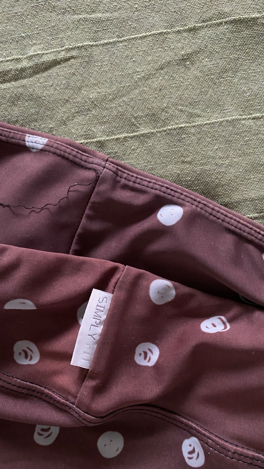 Bodkovavé legíny s tučniakom od slovenskej značky Simply fit. Veľkosť XS, fotené na výške 160 cm. Boli nosené, majú chybičky vid. foto, ktoré ale v nosení neprekážajú. Preto tá nižšia cena.