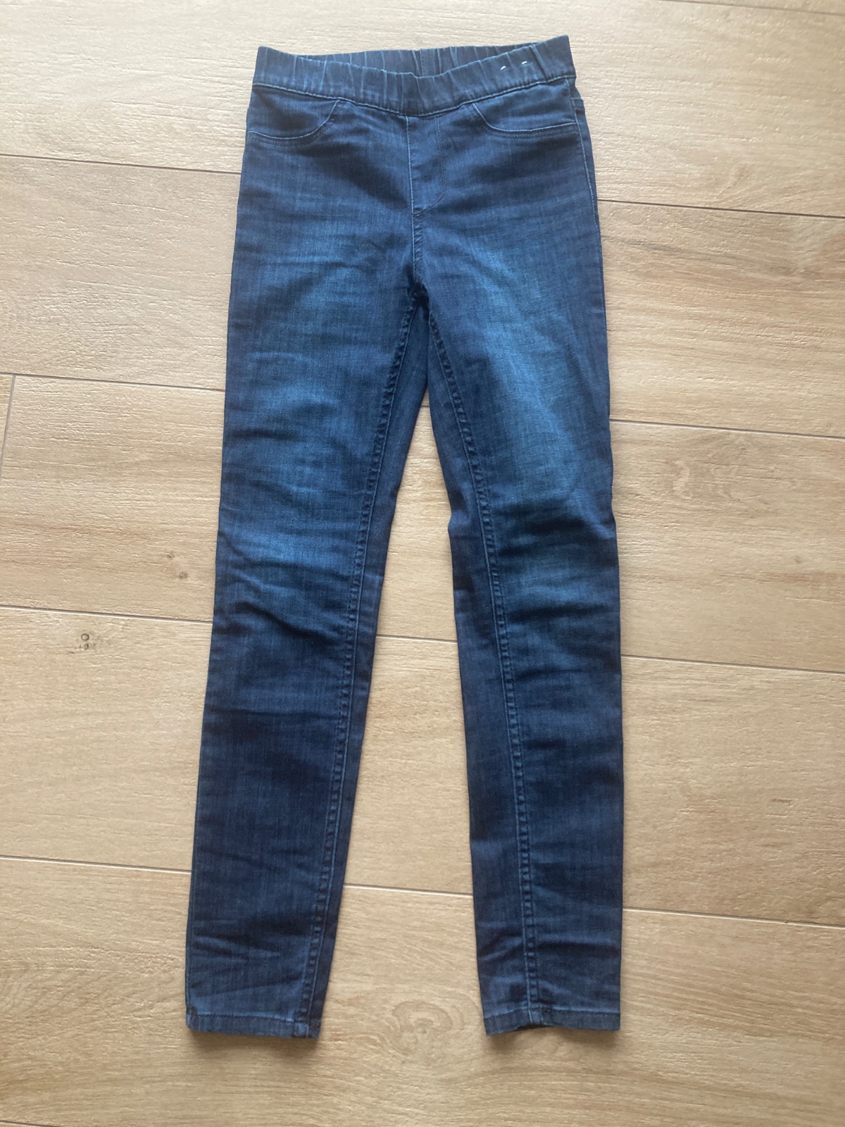 Bez poškodení, mäkké, pás na gumu, vzadu vrecká, obvod pásu v kľude 56 cm, bočná dĺžka 82 cm, od rozkroku nadol 61 cm.