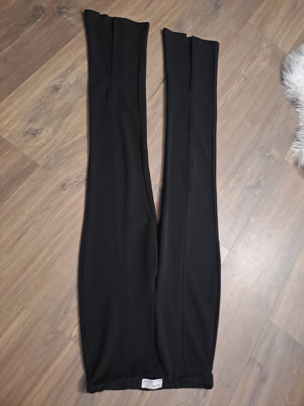 oblecene 1x, bez chyby, elasticke, vyssi pas, mozno mat aj ako leginy, po boku 2 biele pasiky, jedna mini dierka na boku