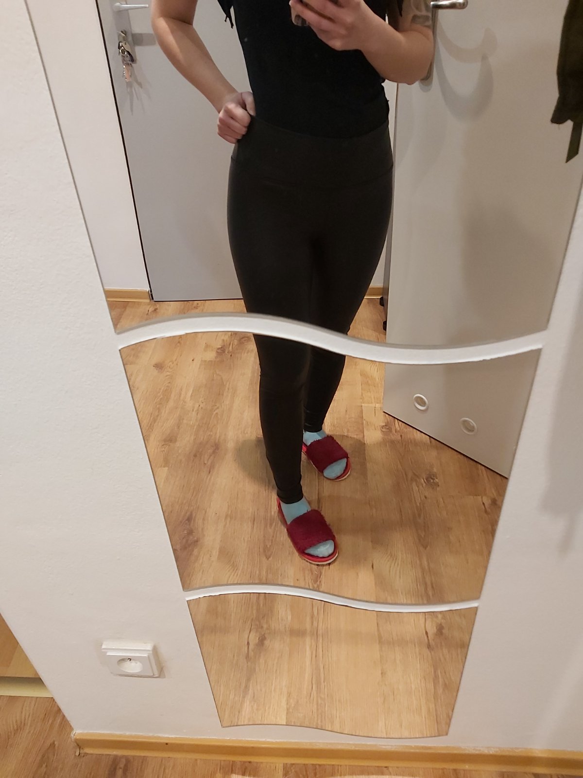 Legíny (imitácia kože), veľkosť písaná S,ale kľudne S/M. Iba vyskúšané.