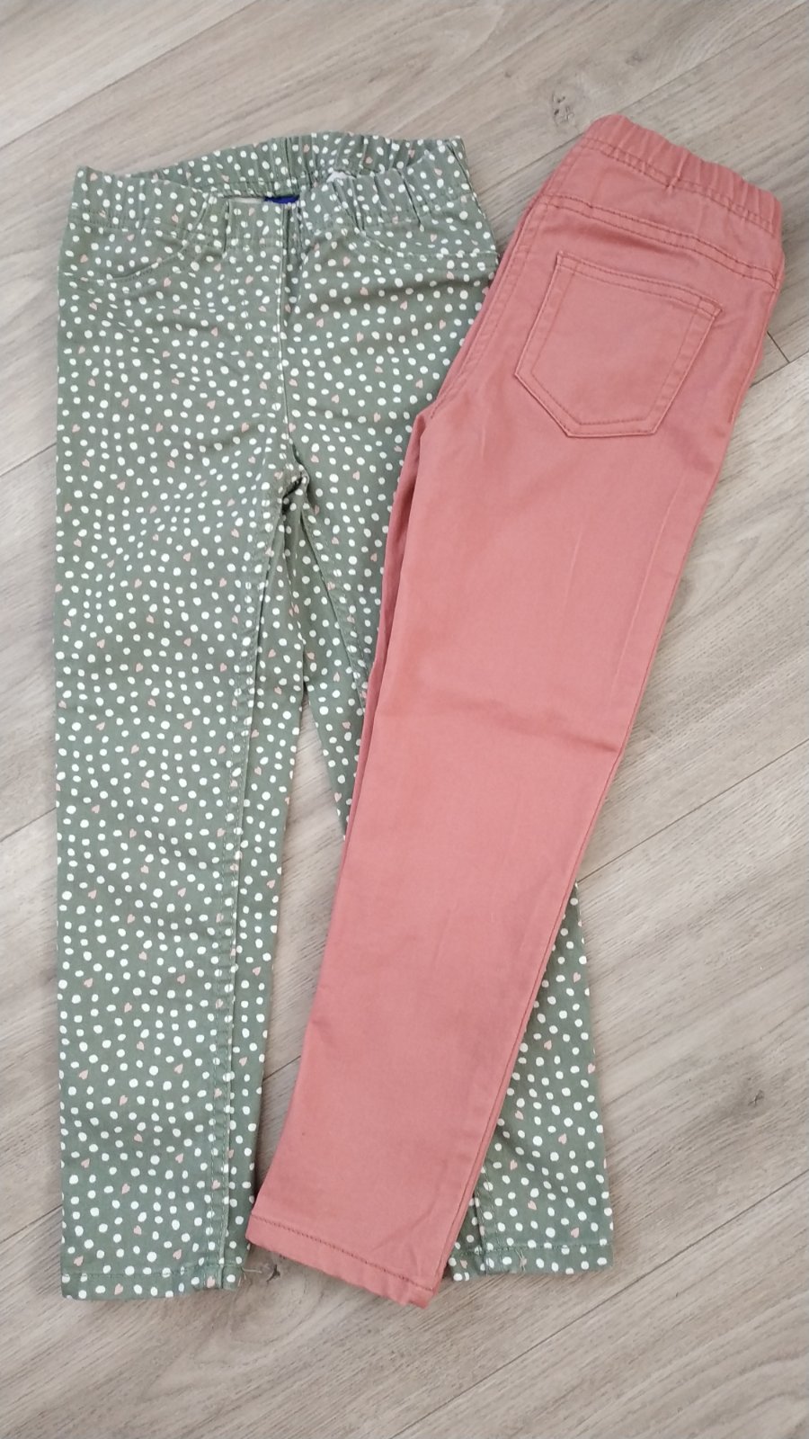Dievčenské nohavice/legíny vo veľkosti 110/116, nové len oprané, kupované v Lidli. Cena spolu 3 € plus poštovné alebo osobný odber.