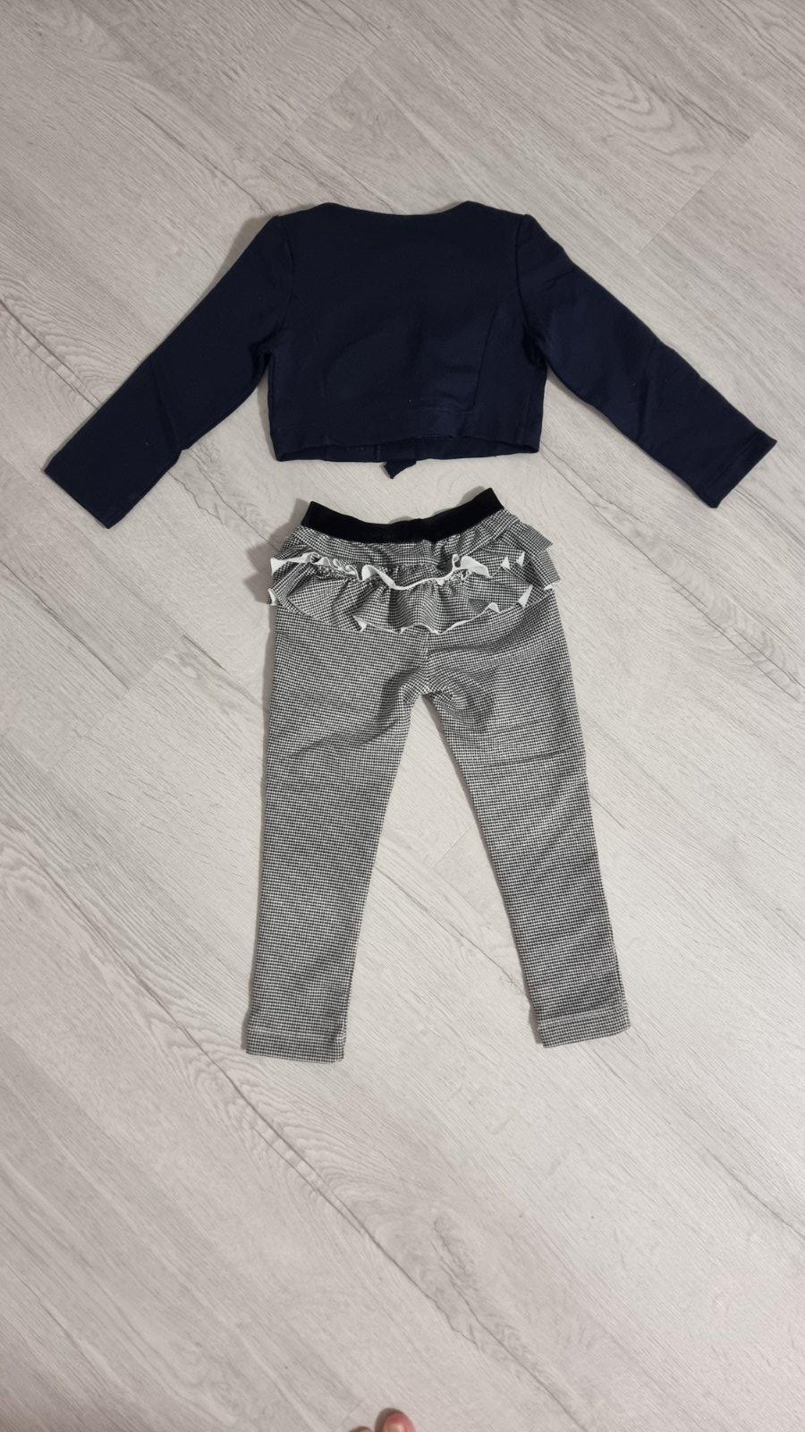 Predám legínky a bolerko mayoral. Iba oprané a skladované. Legínky majú krásny volánik na zadočku. Bolerko je tmavomodré, zapínanie na gombíky. Cena spolu 18€, alebo kus 11€