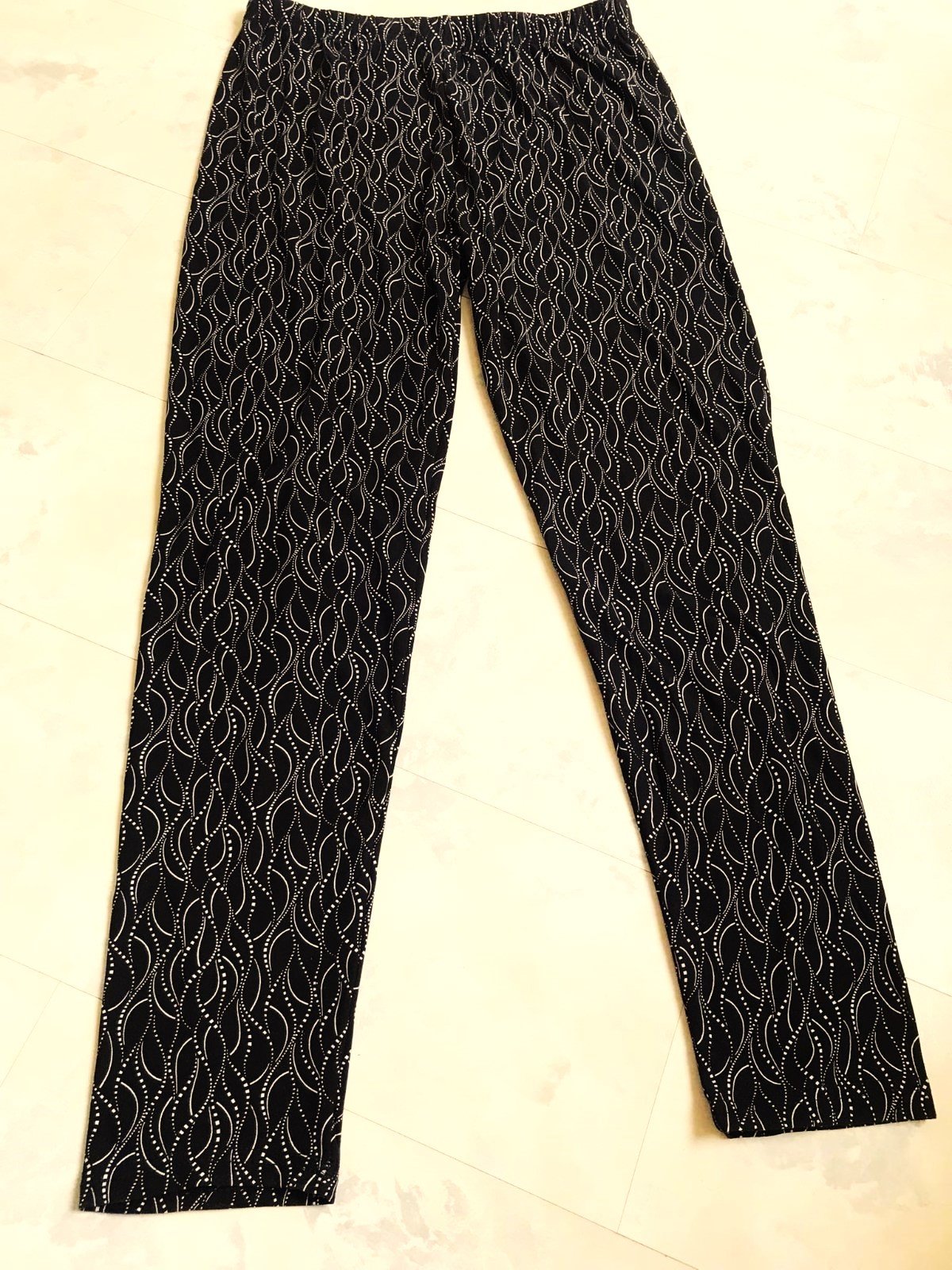 perfektné tenšie nohavice do gumičky,jemný kvalitný materiál = 97 % polyester,3% elastan, pekne držia formu,vhodné aj ako legíny,alebo letné ľahké nohavice,top stav