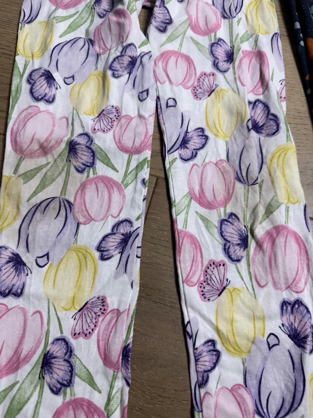 2. Tulipánové - zn. Pepco - tmavšie kolena od kolenovania, neskúšala som špeciálne čistiť, vo vzore nie je veľmi vidno