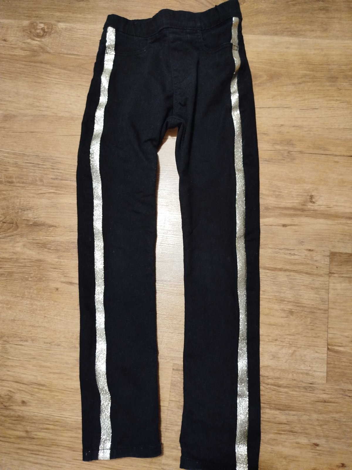 Jegginsy značky HM vo veľmi dobrom stave, veľkosť 128/134, sýta čierna farba,strieborný pás na boku.