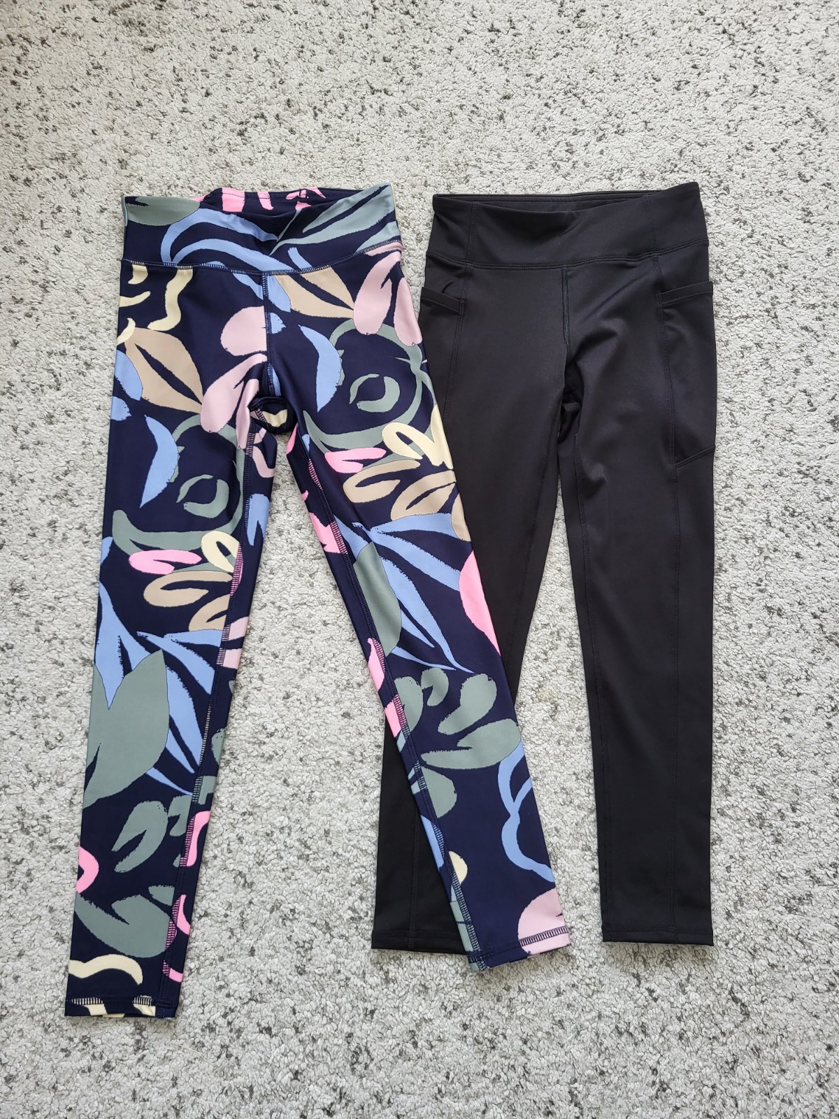 Cierne raz oblecene. Maju na bokoch vrecka. Farebne nenosene. Presne rozmery vid.foto. Cena uz za obe.