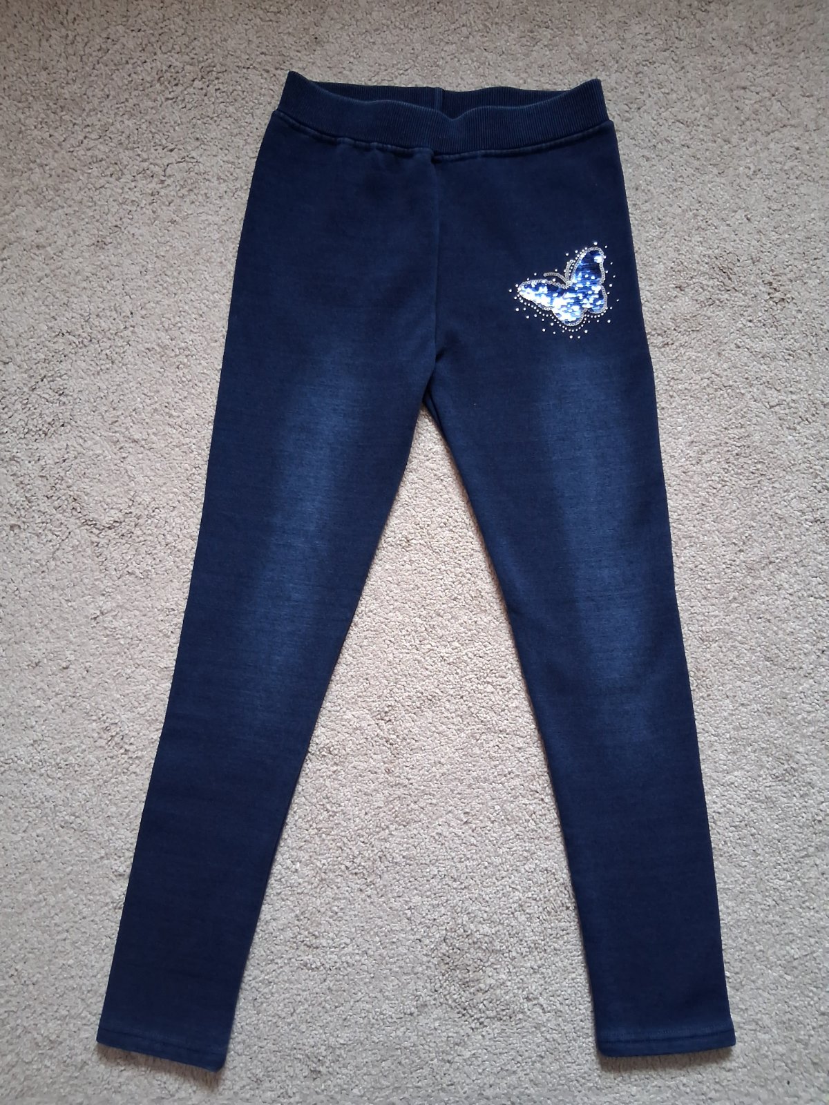 Zateplené legínky na zimu, dlžka 90cm, pás na gumu 31cm v klude, s premieňacím motýlikom. Nenosené.