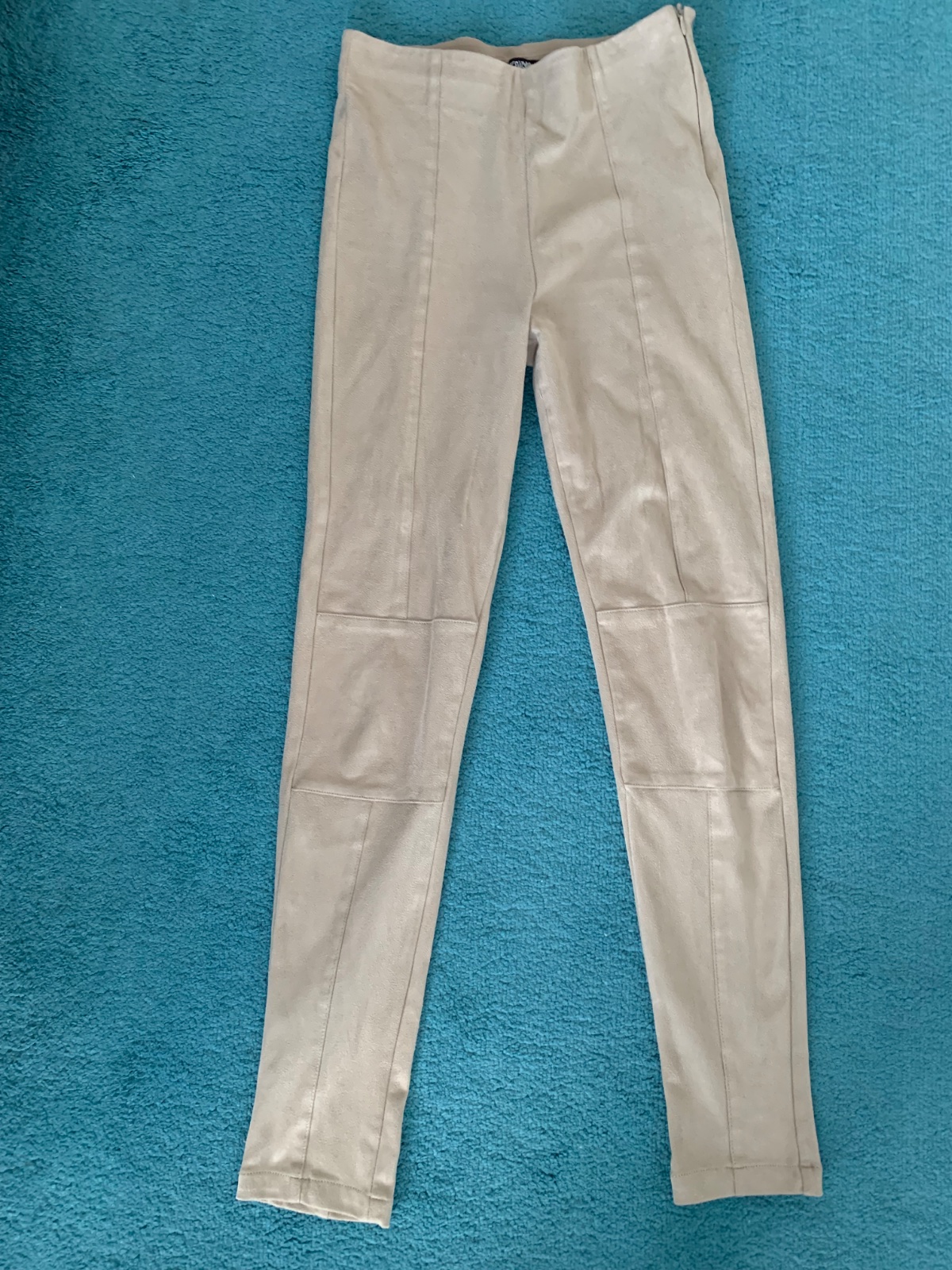 Materiál vyzerá na pohľad ako semiš. Zapínanie na boku zipsom. Polyester+elastan.