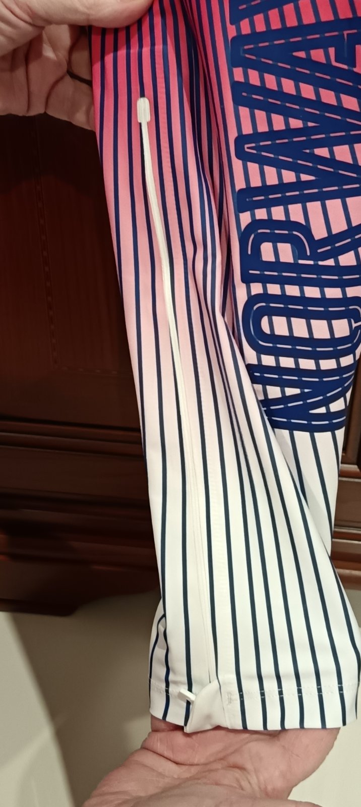 Veľmi kvalitné, hrubšie ale super elastické, 82% polyester, 18% elastan - lycra, úprava pásu vo vnútri, dole po bokoch dlhé zipsy, ideálne na šport, určené sú aj v zime na bežky, super stav.