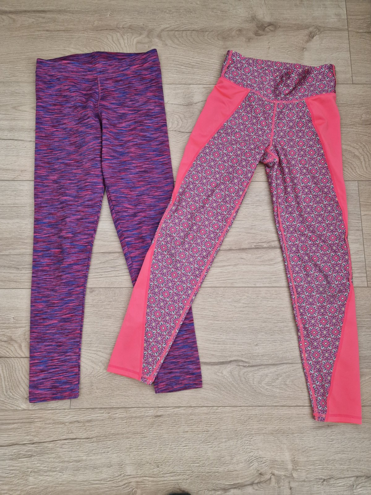 Ružové kvetované neonové pevné legínky 140, Kľudne 146 až 152, do 11rokov určite. Raz prané, ako nové. Nie sú pre štíhlunké dievča, skôr normálnej postavy :). Dĺžky cca 82/57cm (zadná vždy meraná), pás cca 58-60cm.
