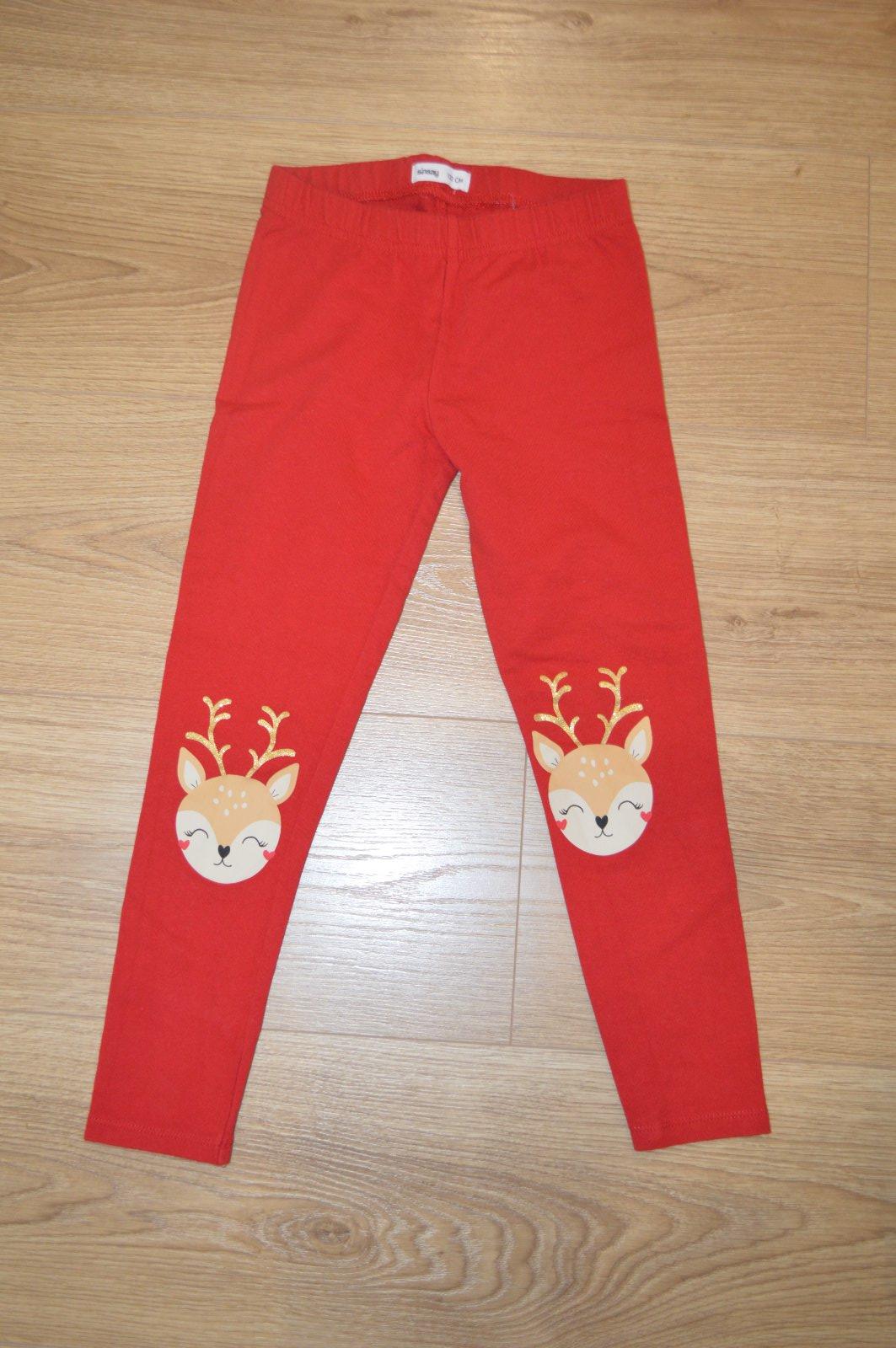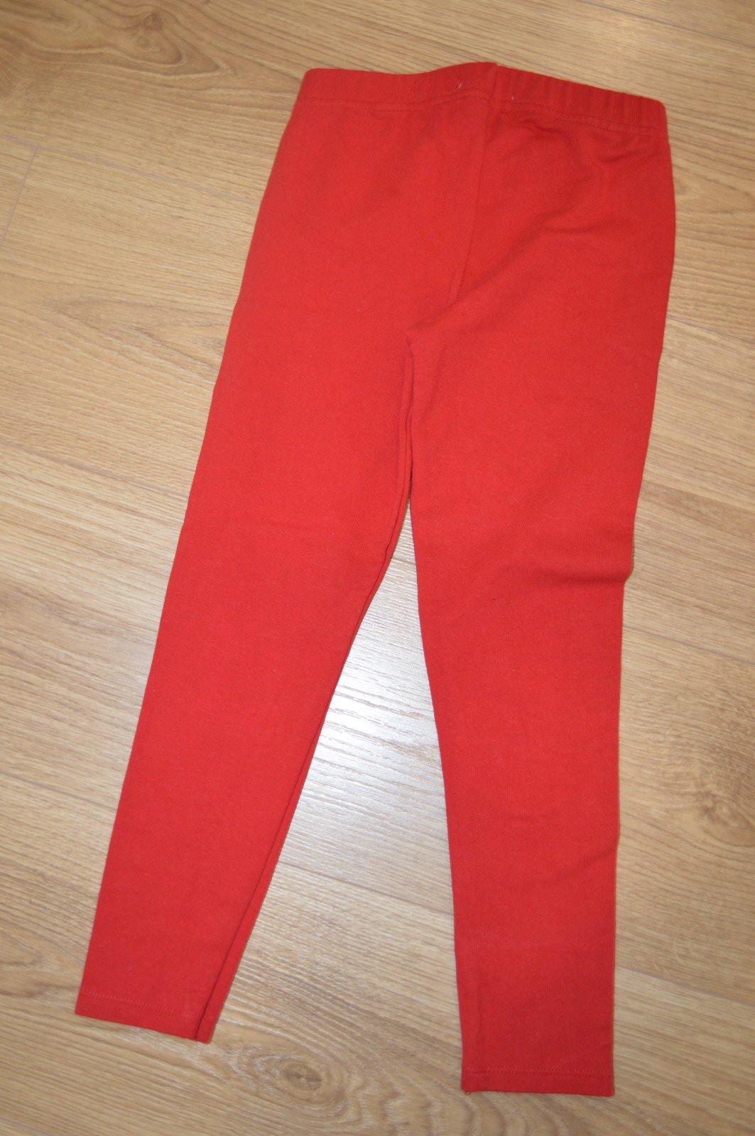 Legíny veľkosť 122, látka je pevnejšia ako bývajú klasické legíny, farba trochu tmavšia červená ako na fotke, bez poškodenia