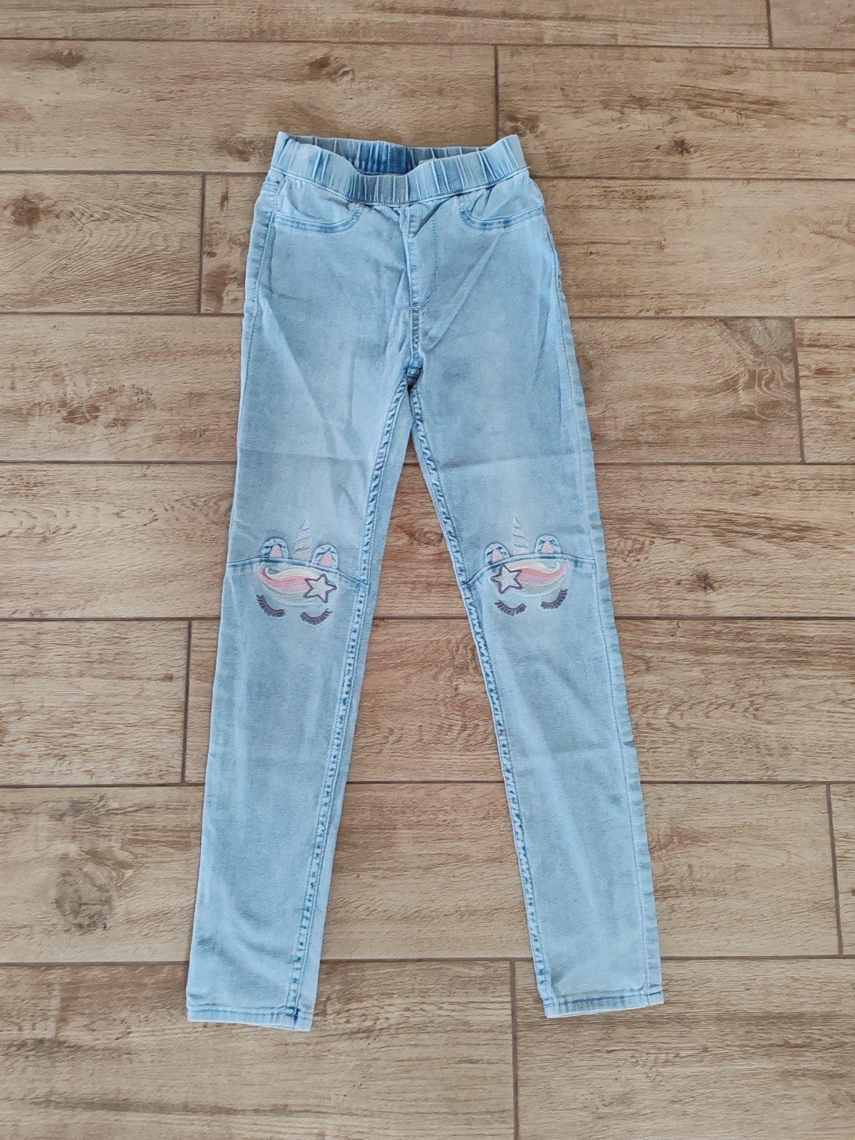 Veľmi pekné džeginy z h&m v super stave len raz oblečené dáko sme nestihli obliecť . Na kolenách sú vyšité chutné myšky . Príjemný materiál veľmi makučké . Cena 11€+poštovné pri odbere viac vecí ...