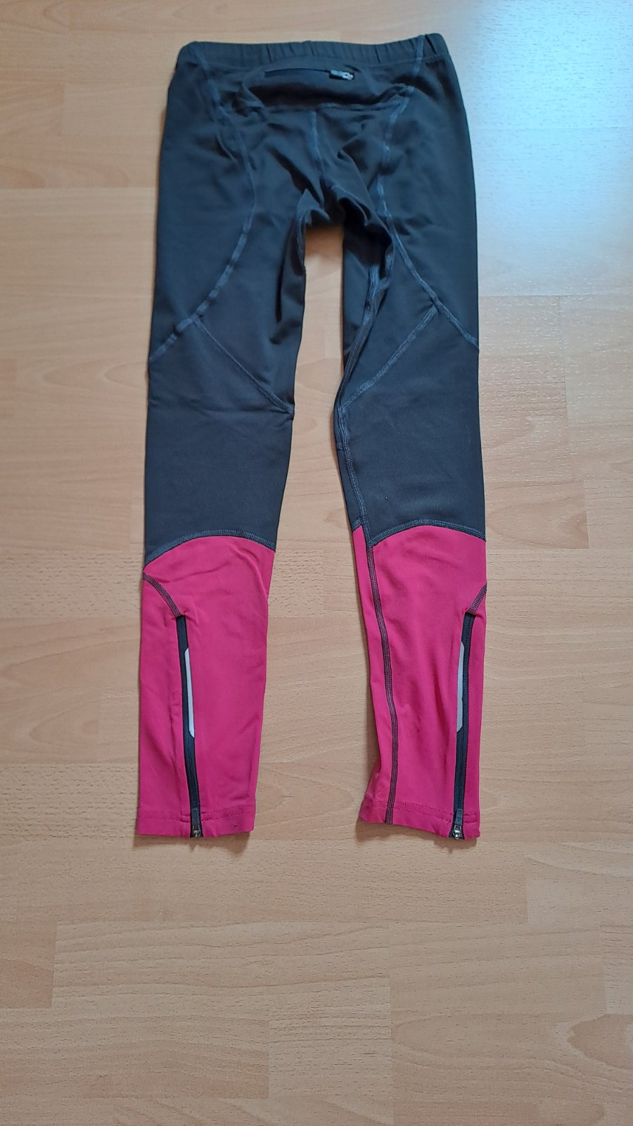 Bežecké legíny Odlo, funkčný rýchloschnúci materiál. V páse šnúrka na stiahnutie. Dole zipsy pre ľahšie obliekanie. Vzadu malé vrecko.. Ako nové. Kúpené tu na MK, no mesadli mi.