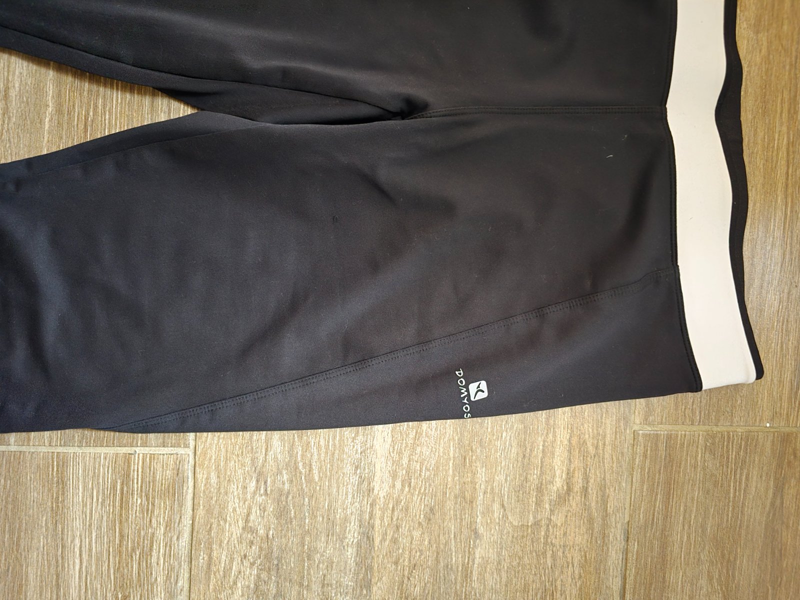 Popis tovaru: čierne7/8 legíny priesvitnými v sádkami na boku, s pohodlným pásom Stav: použité pár krát sú mi malé, nemajú žiadne vady ani poškodenia poslúžia na bežné nosenie, Materiál: 91 % polye...