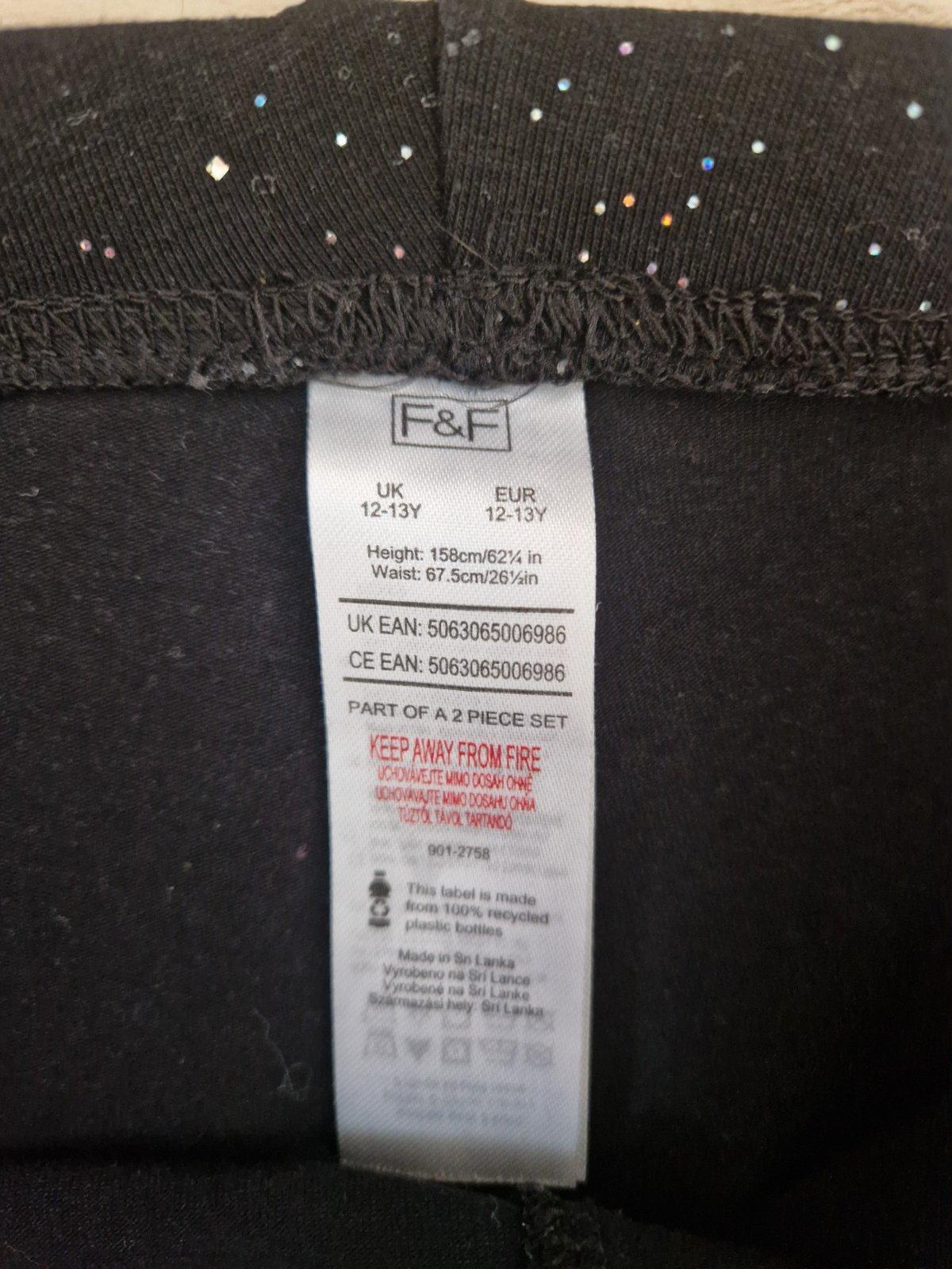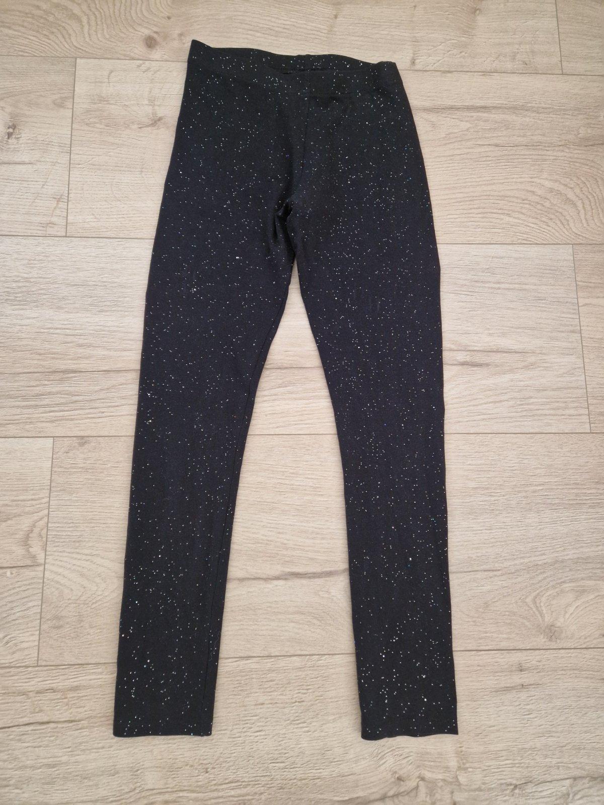 Cierne leginy so striebornymi perlickami, F&F, 12-13rokov. Pas 58cm zuzeny, cca dlzky 84/64cm.