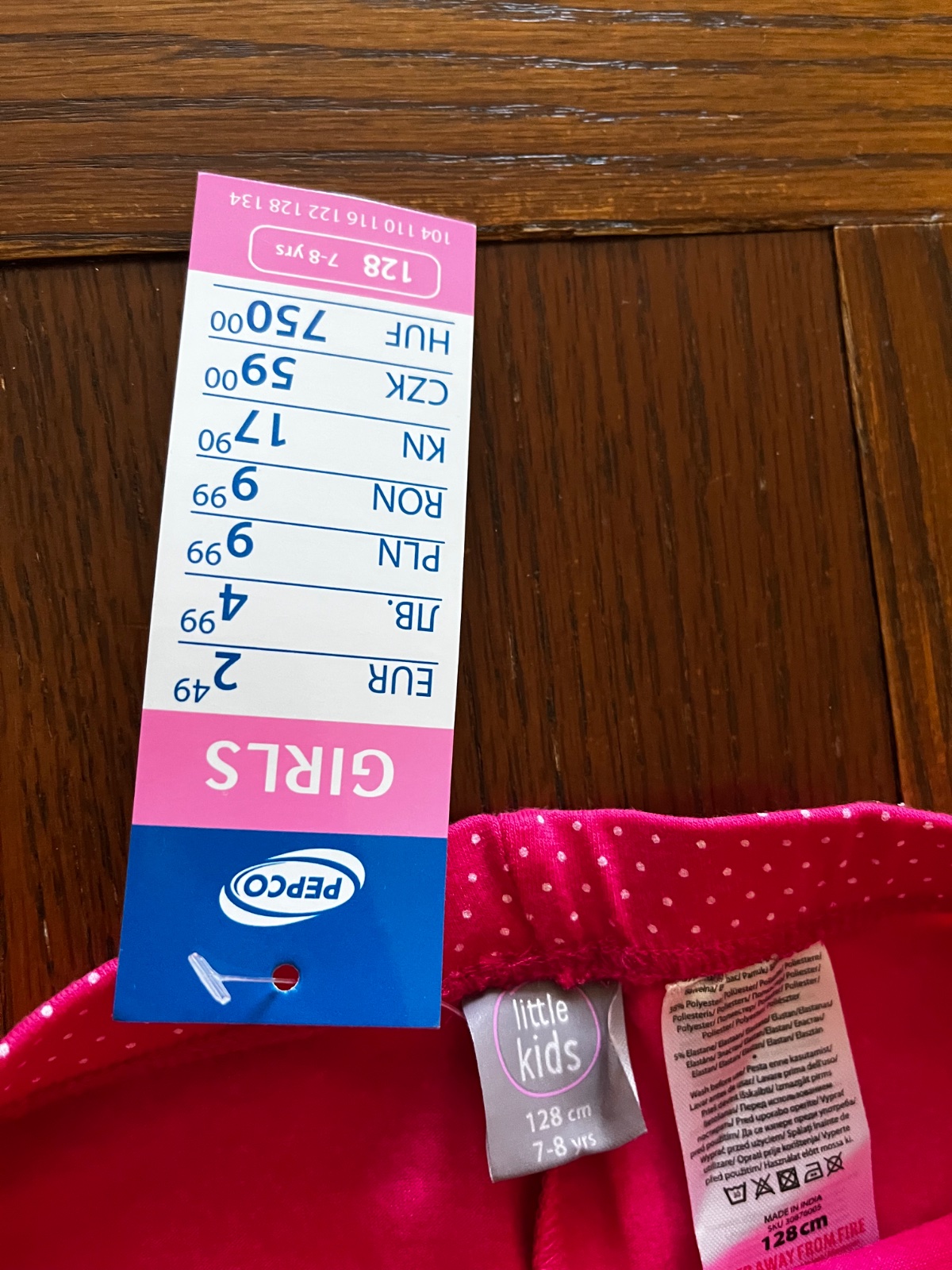 Legínky sú s celoplošným vzorom malých bodiek alebo hviezdičiek.