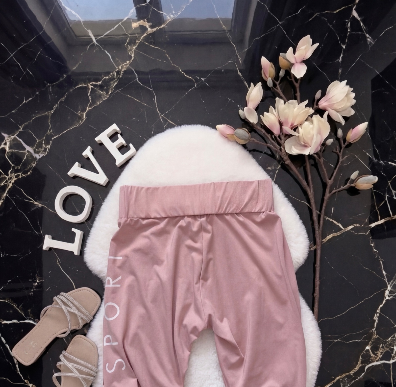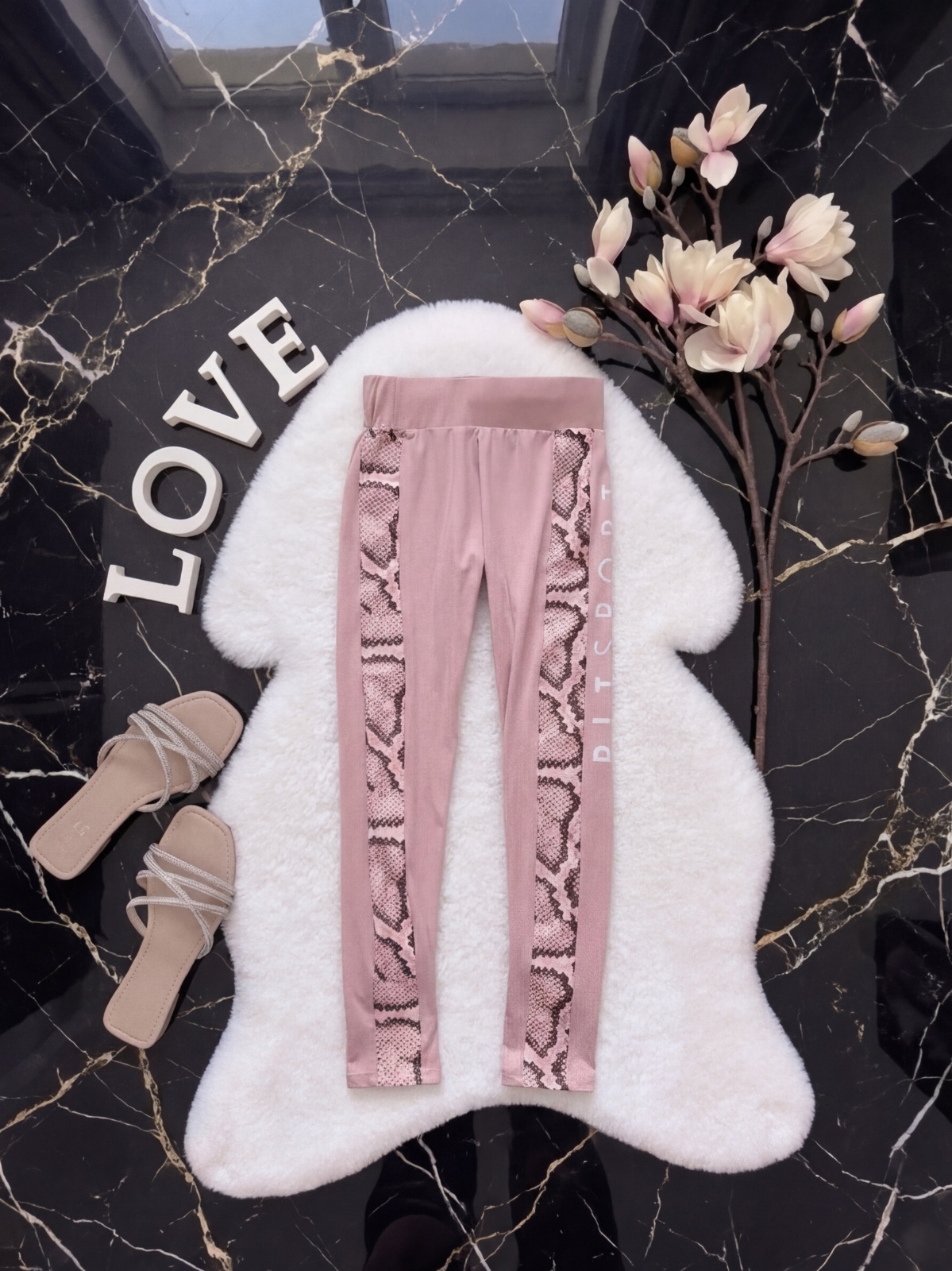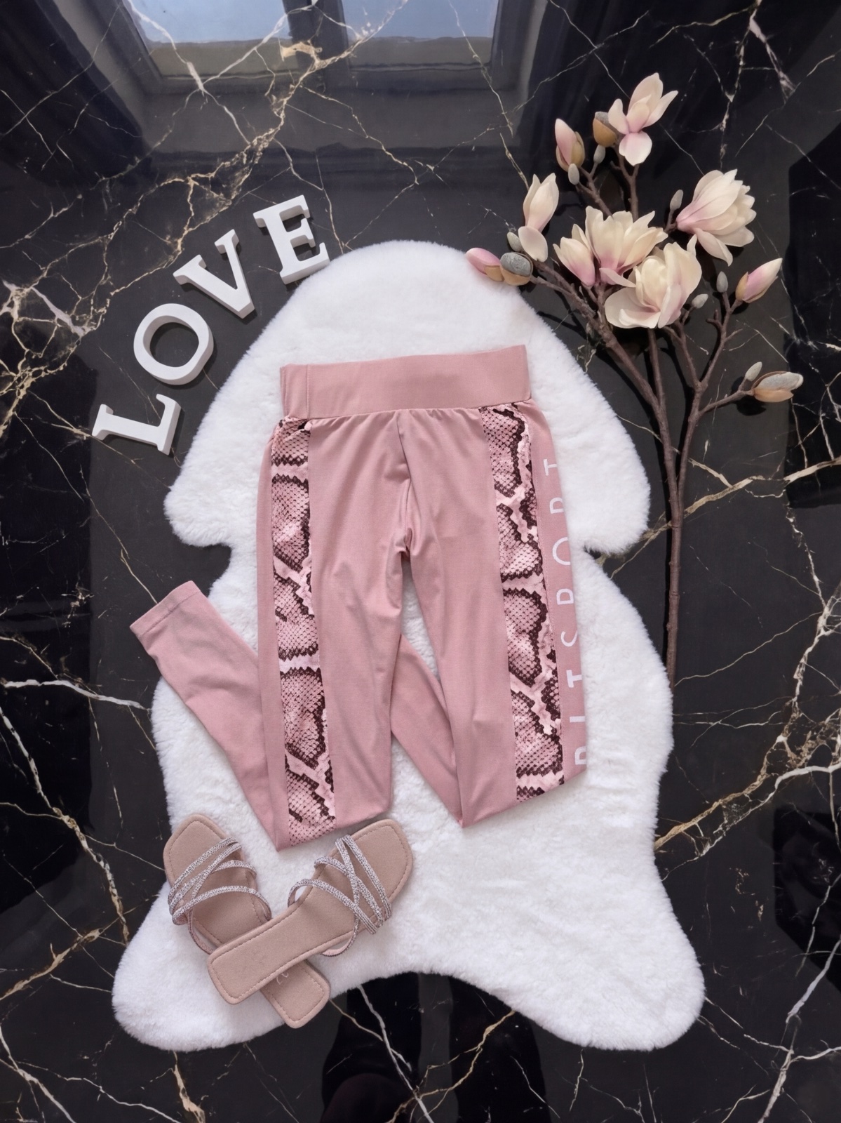 Športové bledoružové legíny, málo nosené v top stave, vysoký pás, nápis na boku. Bez chyby.