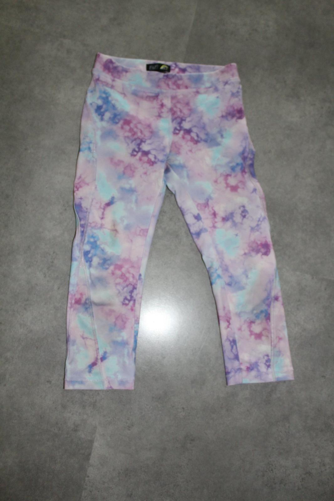 Predám dievčenské 3/4 športové legíny ružovo-fialovej farby, vhodné na tancovanie aj turistiku. Známky použitia. Celková dĺžka 56 cm. Cena 3E+poštovné.