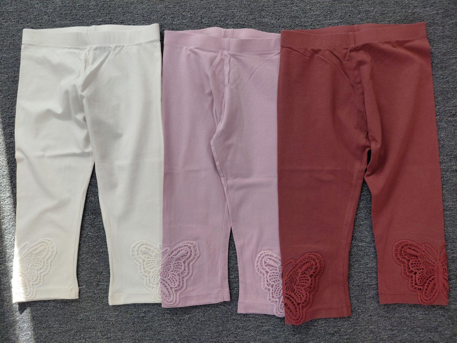 Sada 3 dievčenských7/8 legín. S aplikáciou motýľa. Veľ 134. Nosené, ale v top stave a bez piškodení. Uvedená cena je vrátane poštovného.
