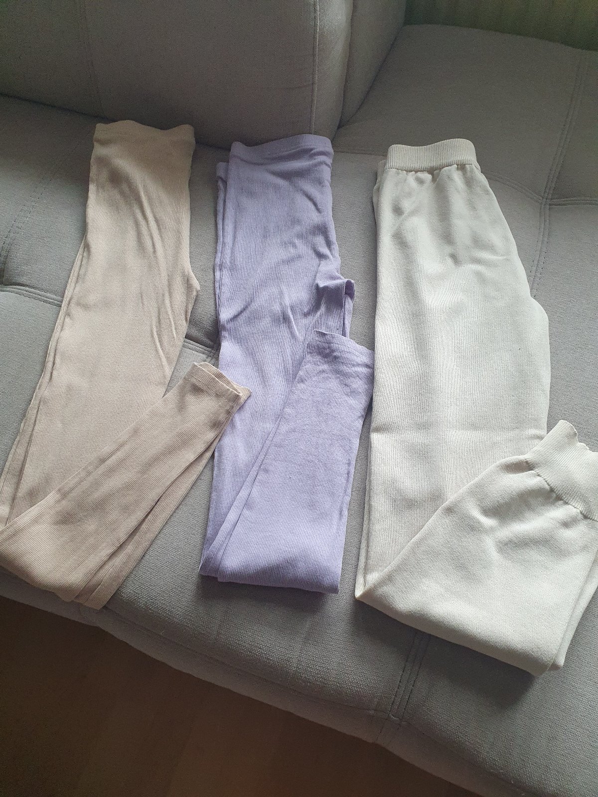Predám 3 ks legín veľ. 158. Fialové a maslové sú tenšie a druhé maslové sú hrubšie. Bez poškodenia. Cena spolu.