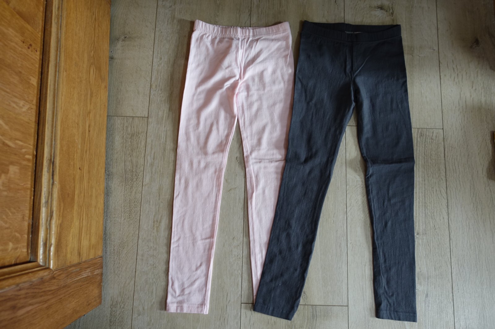 Predám prekrásne 2 bavlnené legínky tmavo šedé a pastelovo ružové. Mali sme ich 1x, ale sú v top stave. Celková dĺžka ružových legín je 70 cm a šírka pásu 24,5 cm. Celková dĺžka šedých legín je 75 cm a šírka pásu 25 cm. Predaj iba spolu. (G)