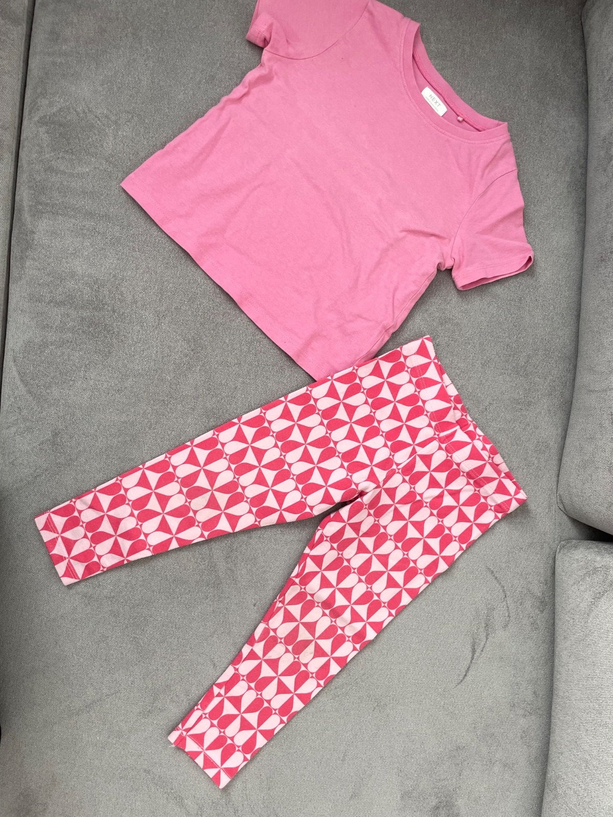 Predám legíny s tričkom. Legíny majú bledé fliaciky na kolenách veľmi slabo viditeľne, tričko je bez akýchkoľvek nedostatkov. Cena je za cely komplet