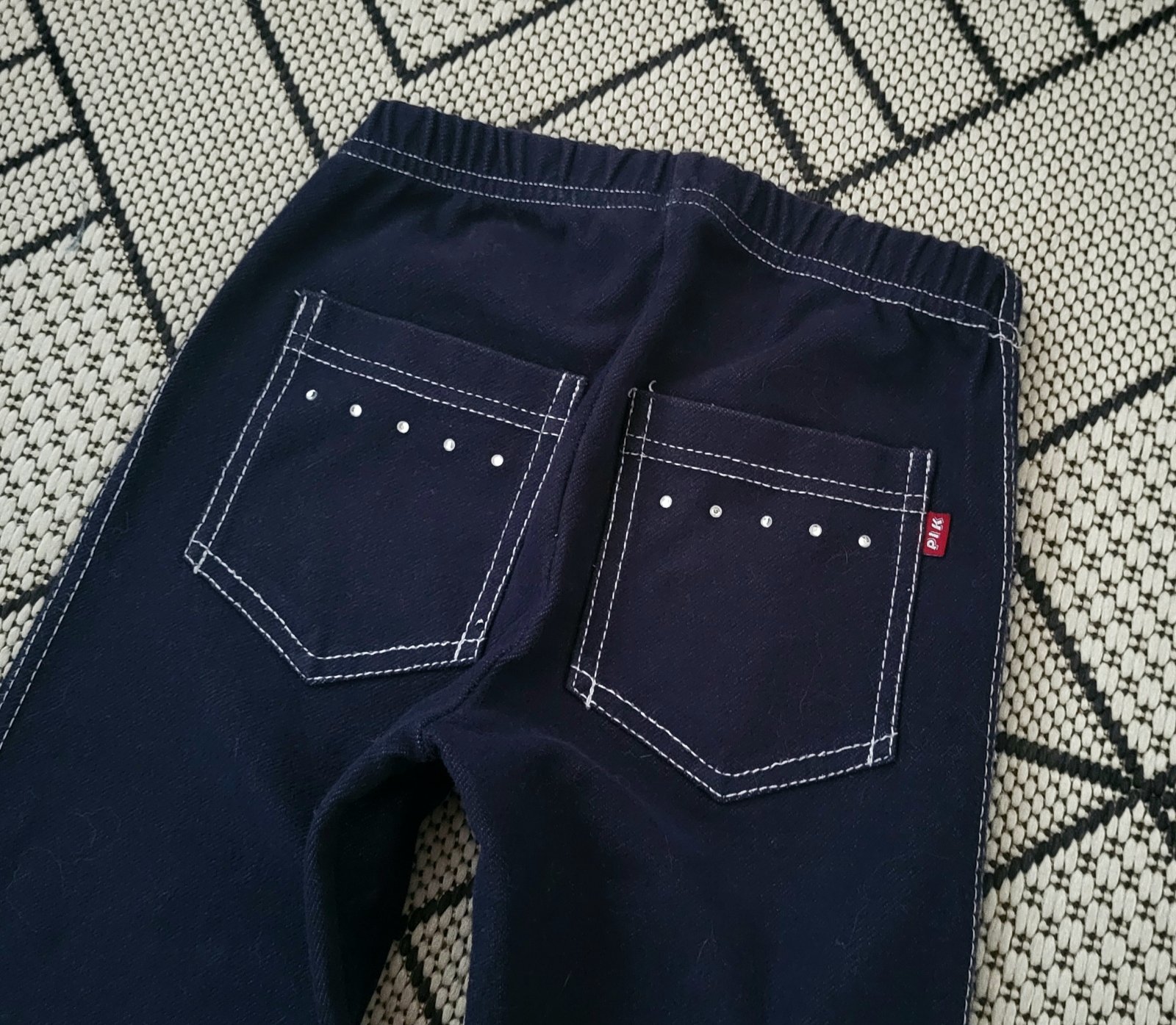veľmi dobrý stav, mierne kolienka no nič hrozné, kľudne do spoločnosti, modrej farby, na zadných vačkoch s kamienkami, s elastanom, CD 68,5cm, dl.od rozkroku 51cm, pás 24x2 až 33x2, poštovné buď obyčajne alebo doporučene