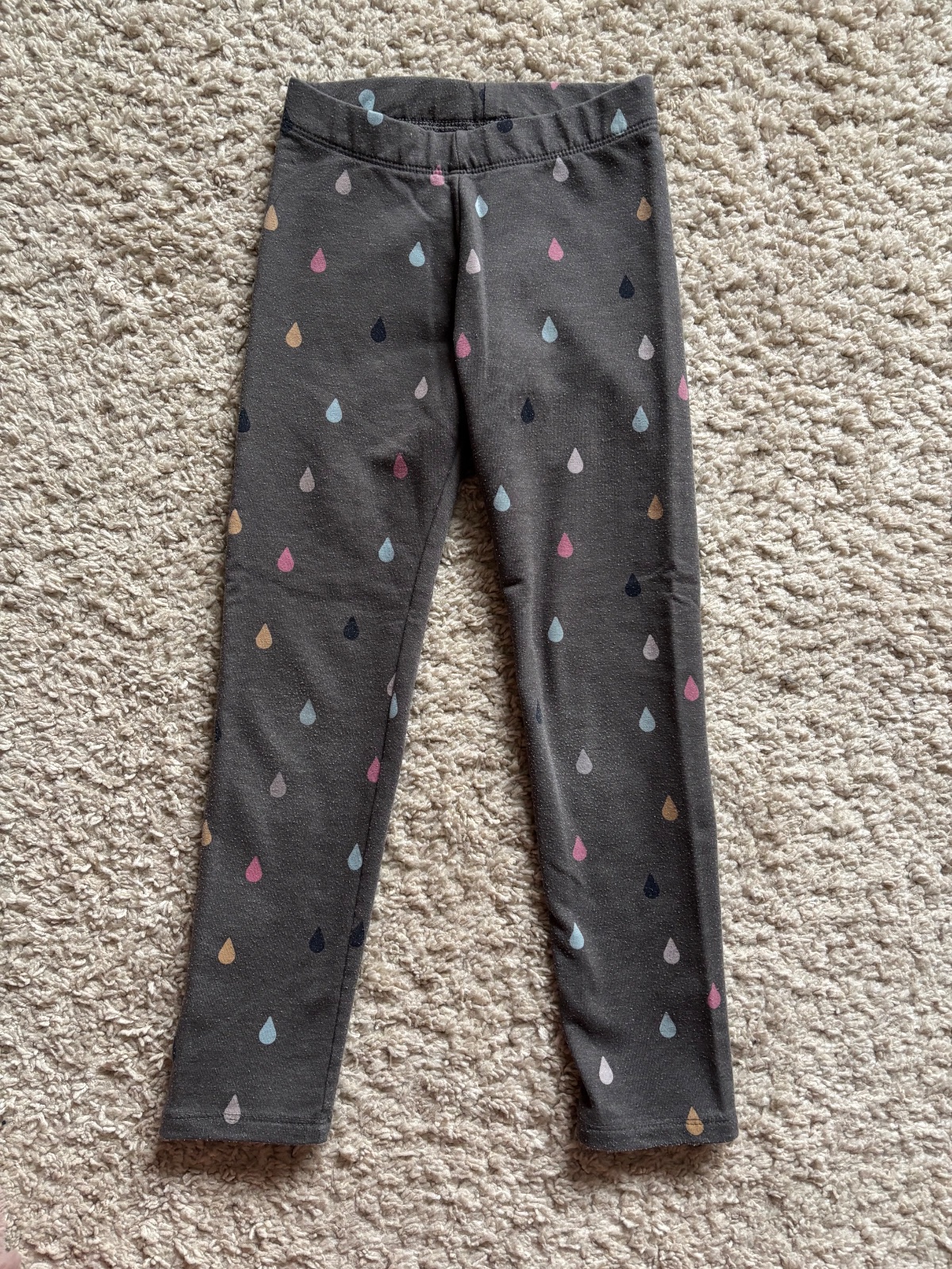 Legíny vo veľmi dobrom stave bez poškodení. Zvnútra česaná bavlna. Písaná veľkosť 128, no sú menšie, preto sme ich aj krátko nosili. Dĺžka od rozkroku 44 cm.