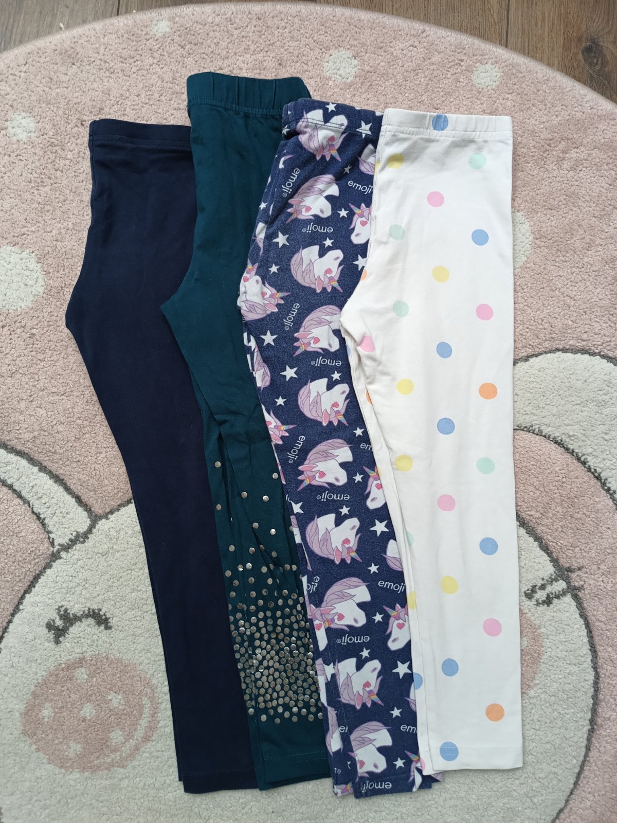 Modré a zelené bez poškodenia, na bielych je fľiačik, jednorožcové sú dosť nosené, tie dávam zdarma. Cena spolu 2€.