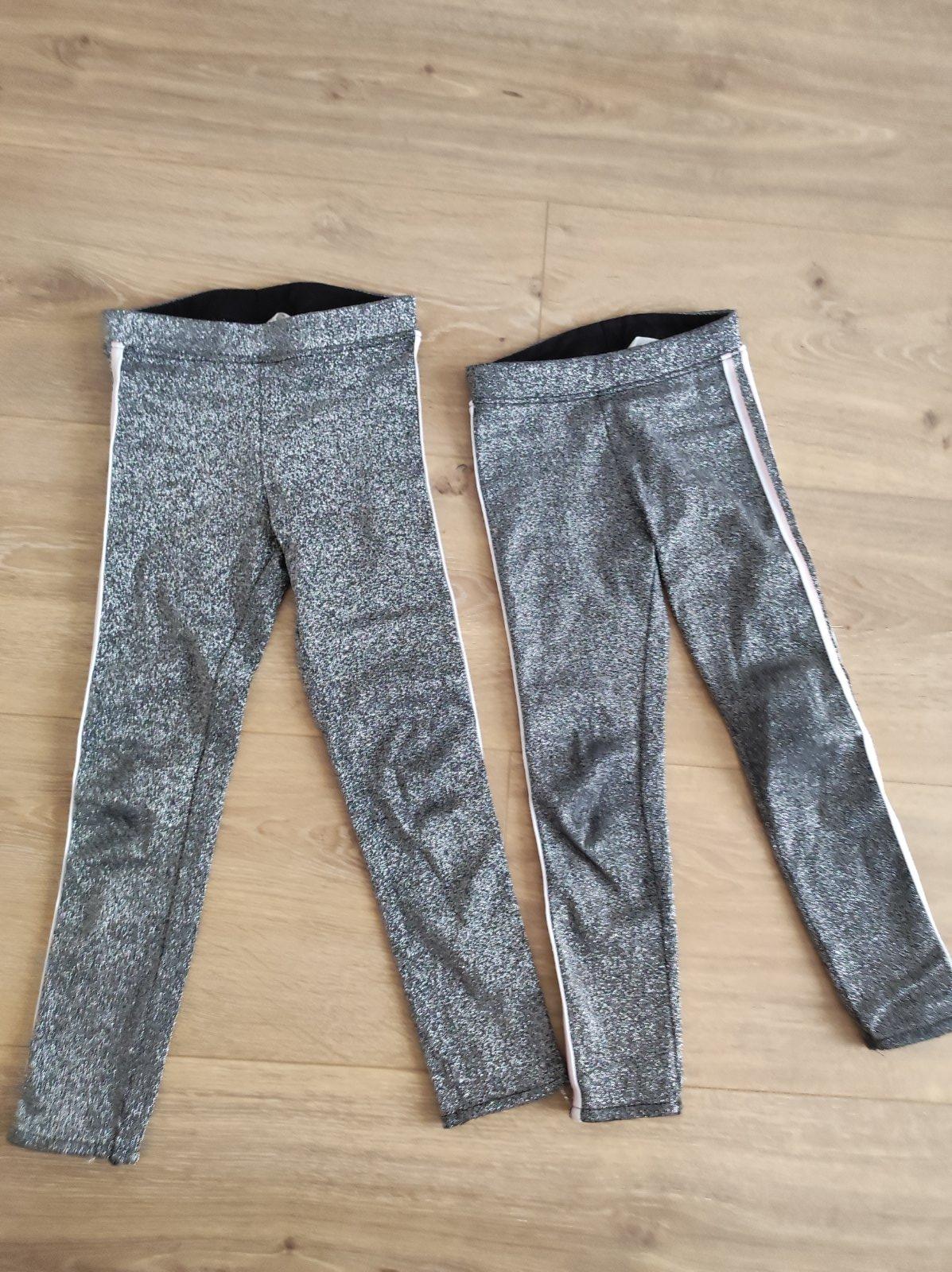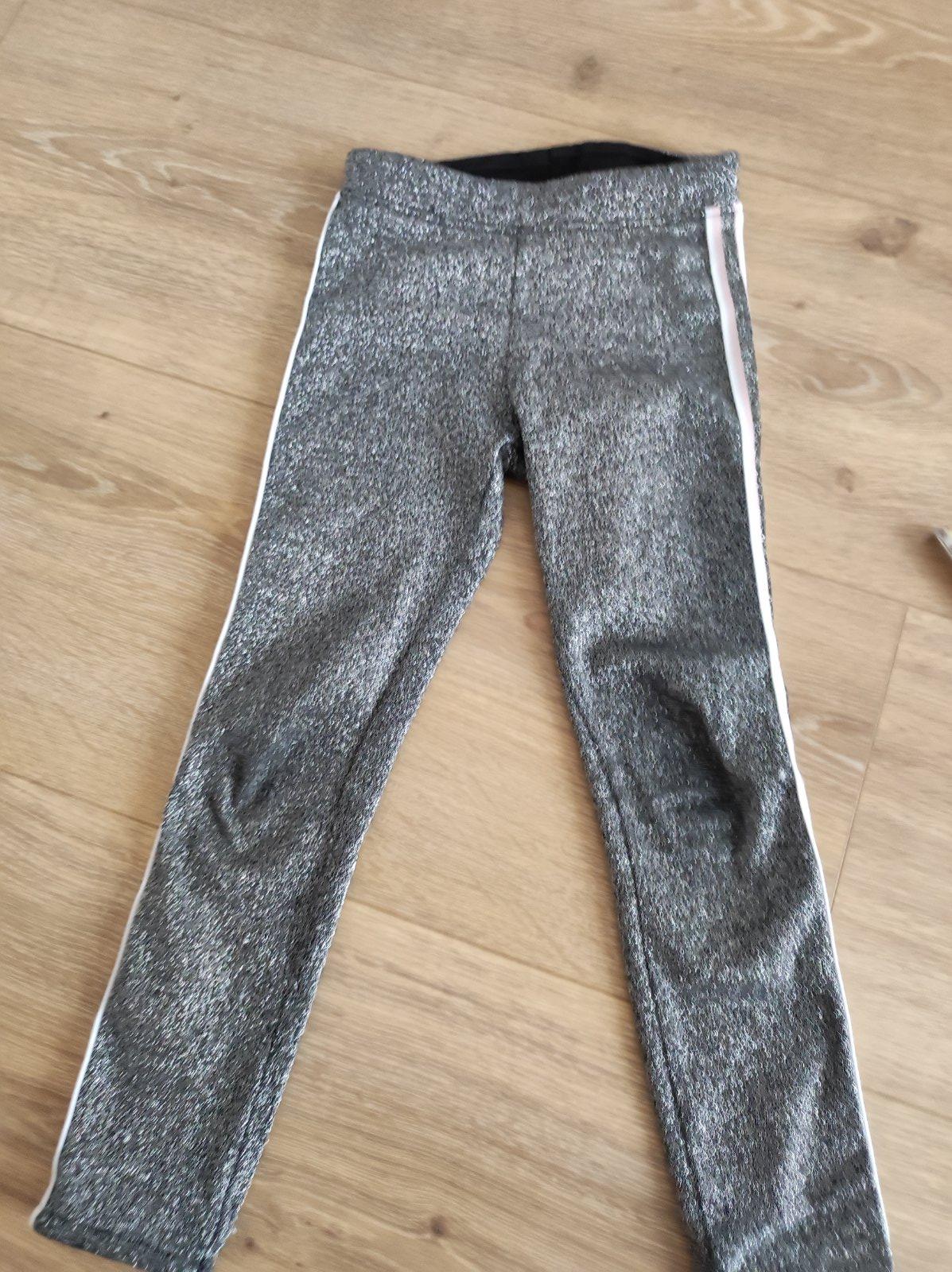 Trblietavé leginy striebornej farby. Rozmery na foto. V dobrom stave. Mám ich aj vo veľkosti 116. Sú teplejšie, lebo sú podšité.