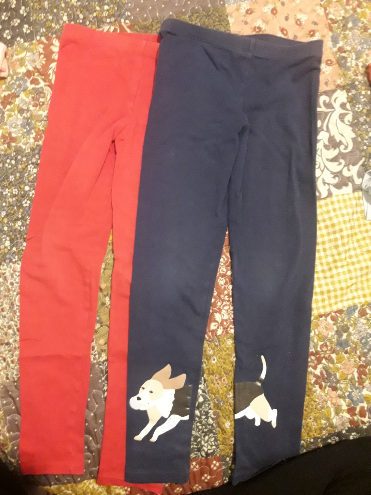 Legínky mali na kolienku mini dierku, preto nažehľovačka. Mali sme ich v škôlke ako náhradné oblečenie, max.3x oblečené.
